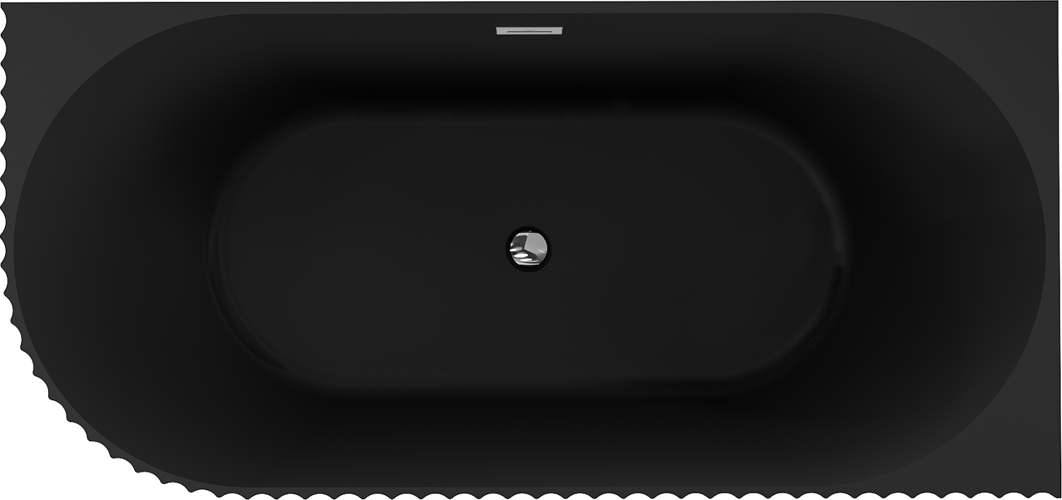 Mexen Gia freestanding corner ribbed bath right 170 x 80 cm, black matte, chrome overflow - 52701708071P-01