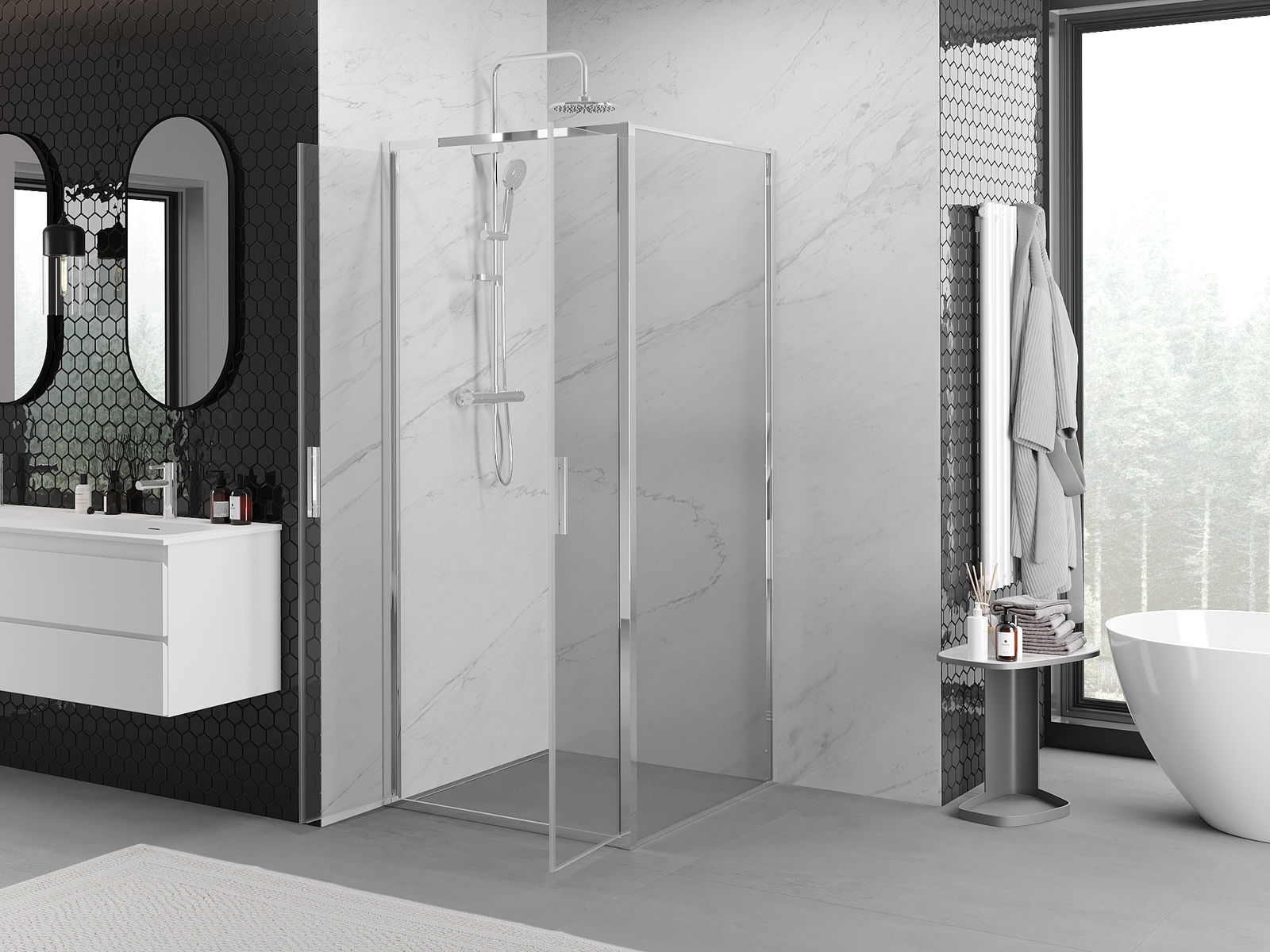 Thanks to the use of a universal mounting system, shower doors can be installed on the right or left side, depending on your needs. This allows you to easily design a shower tailored to the bathroom space.