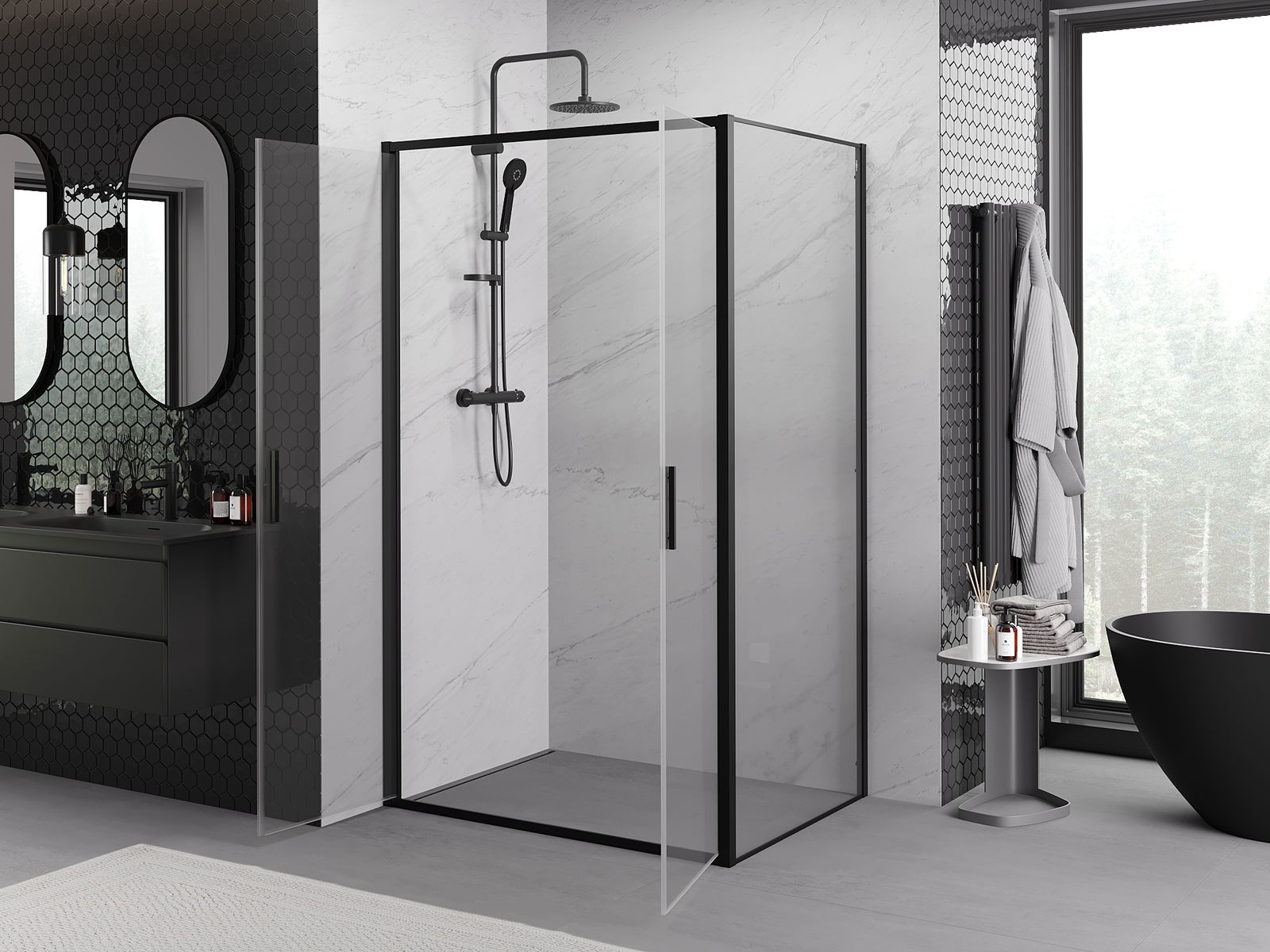 Thanks to the use of a universal mounting system, shower doors can be installed on the right or left side, depending on your needs. This allows you to easily design a shower tailored to the bathroom space.