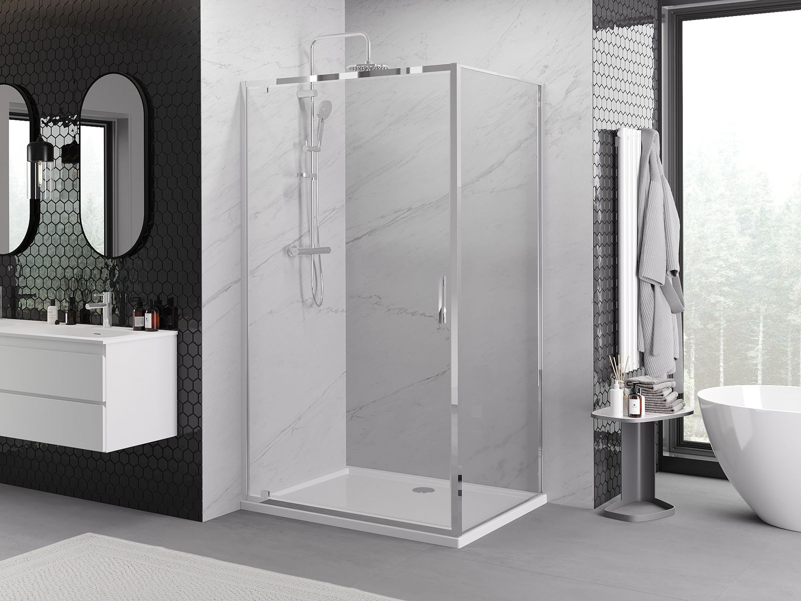 Thanks to the use of a universal mounting system, shower doors can be installed on the right or left side, depending on your needs. This allows you to easily design a shower tailored to the bathroom space.