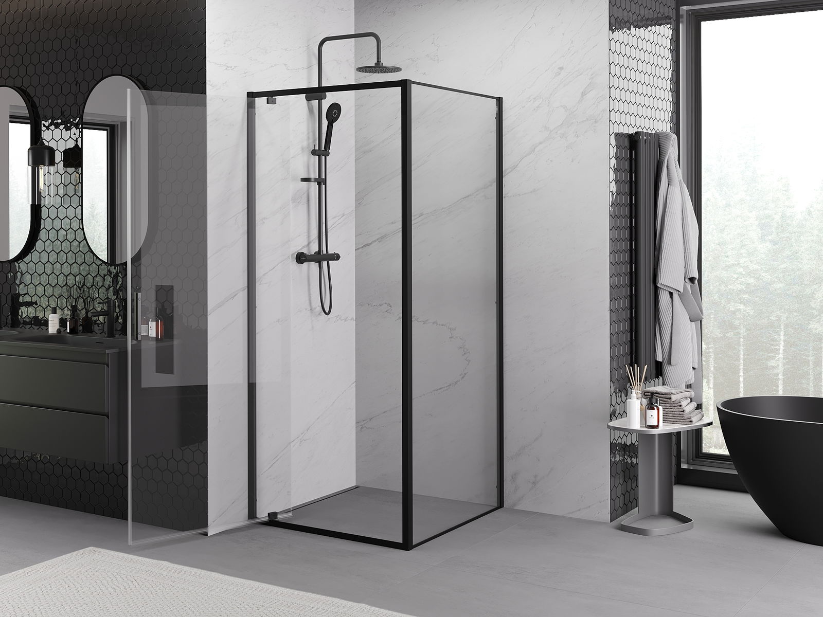 Thanks to the use of a universal mounting system, shower doors can be installed on the right or left side, depending on your needs. This allows you to easily design a shower tailored to the bathroom space.