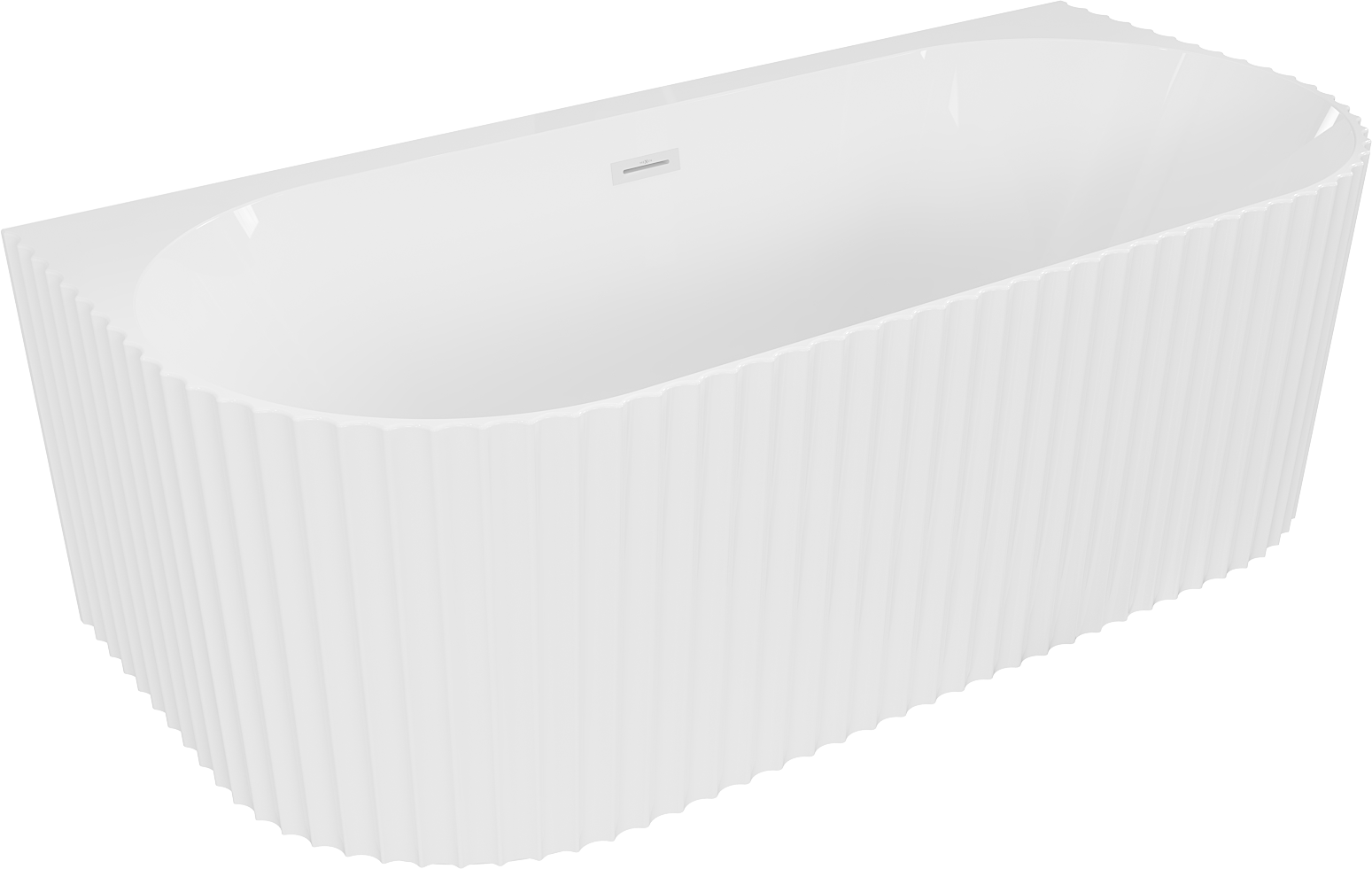 Mexen Sella freestanding back-to-wall ribbed bath 150 x 75 cm, white gloss, white overflow - 52711507500-20