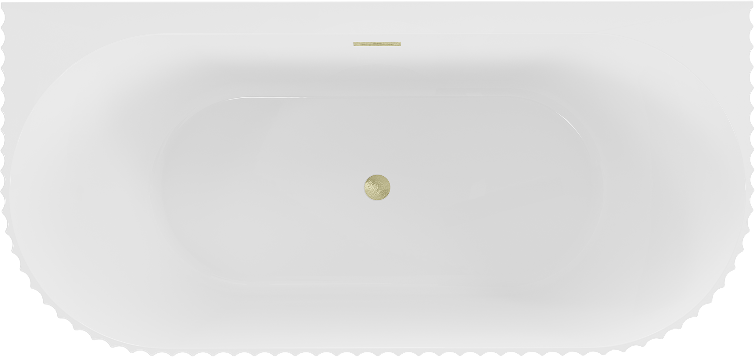 Mexen Sella freestanding back-to-wall fluted bath 150 x 75 cm, white gloss, brushed gold overflow - 52711507500-55