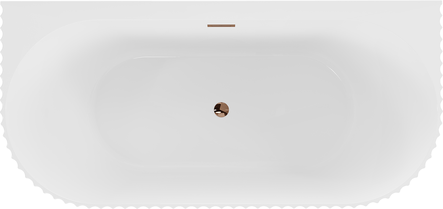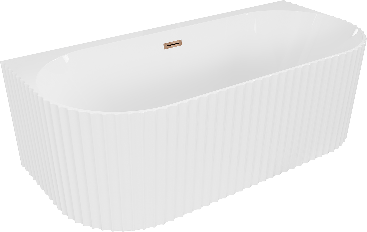 Mexen Sella freestanding back-to-wall fluted bathtub 150 x 75 cm, white gloss, overflow rose gold - 52711507500-60