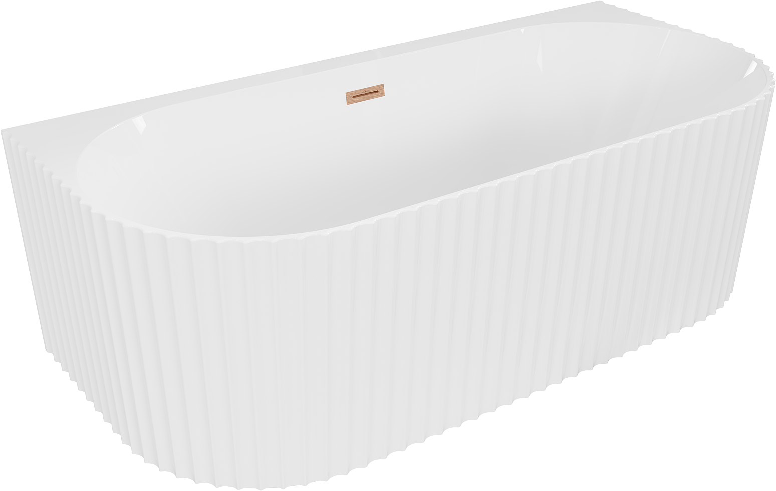 Mexen Sella freestanding back-to-wall fluted bathtub 150 x 75 cm, white gloss, brushed copper overflow - 52711507500-65