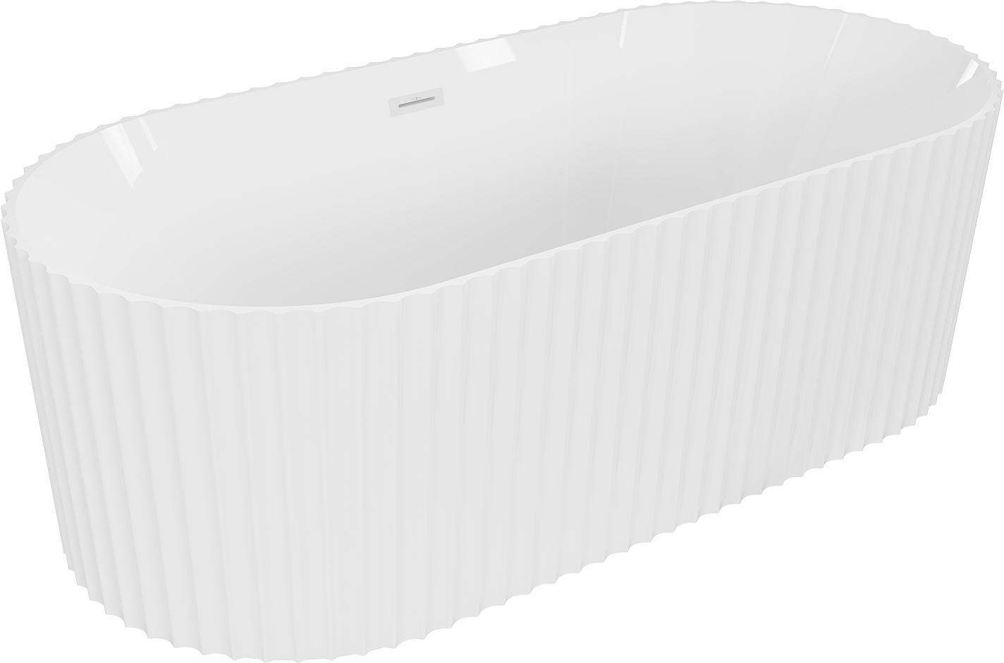Mexen Paola freestanding ribbed bath 150 x 75 cm, white gloss, white overflow - 52721507500-20