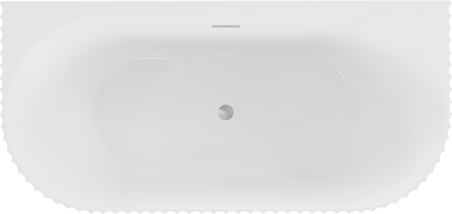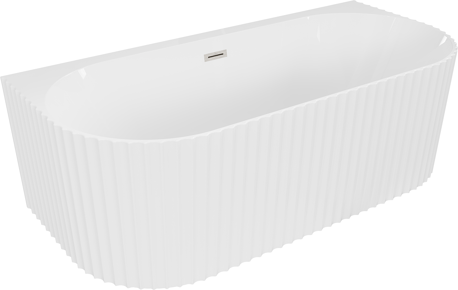 Mexen Sella free-standing wall-adjacent ribbed bath 150 x 75 cm, white gloss, brushed nickel overflow - 52711507500-97