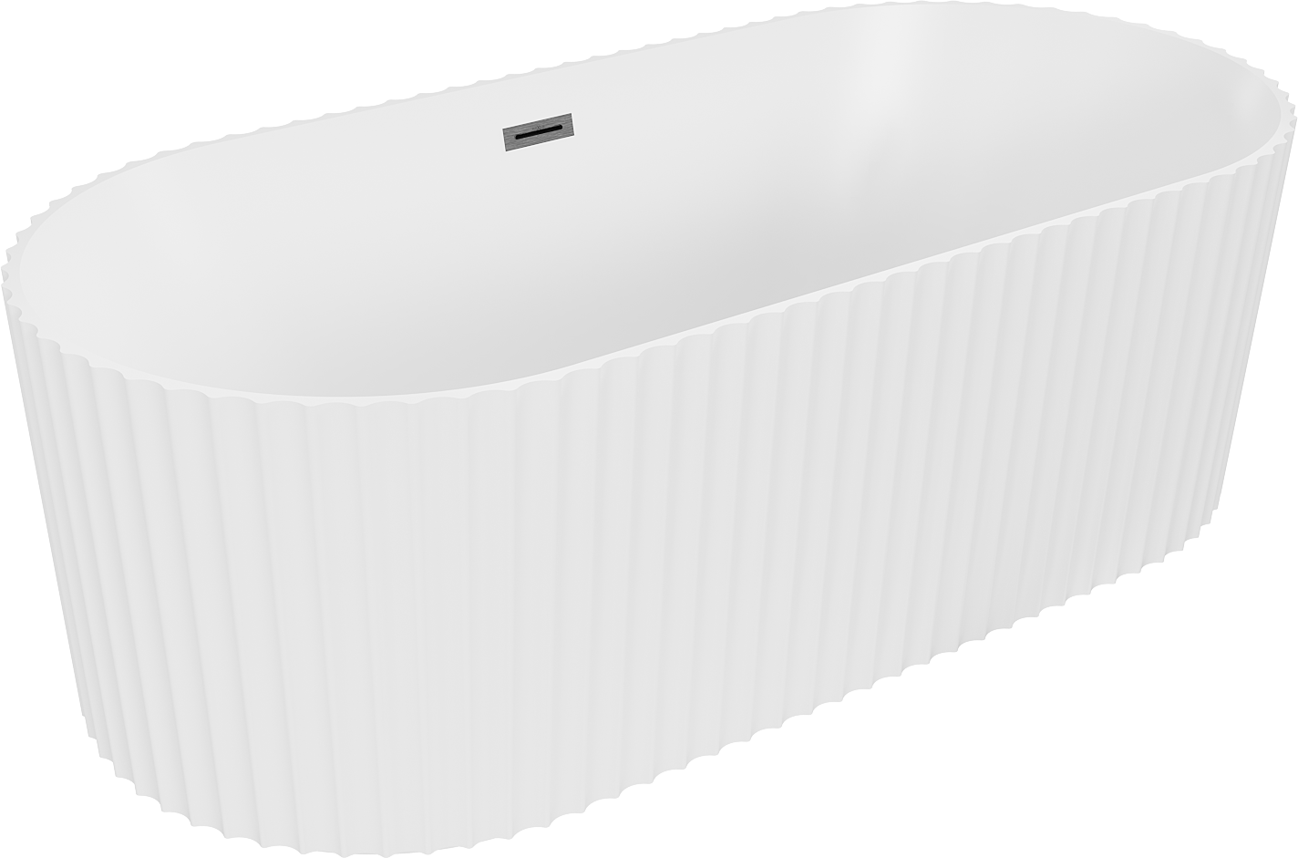 Mexen Paola freestanding ribbed bath 150 x 75 cm, white matte, gun gray brushed overflow - 52721507501-66