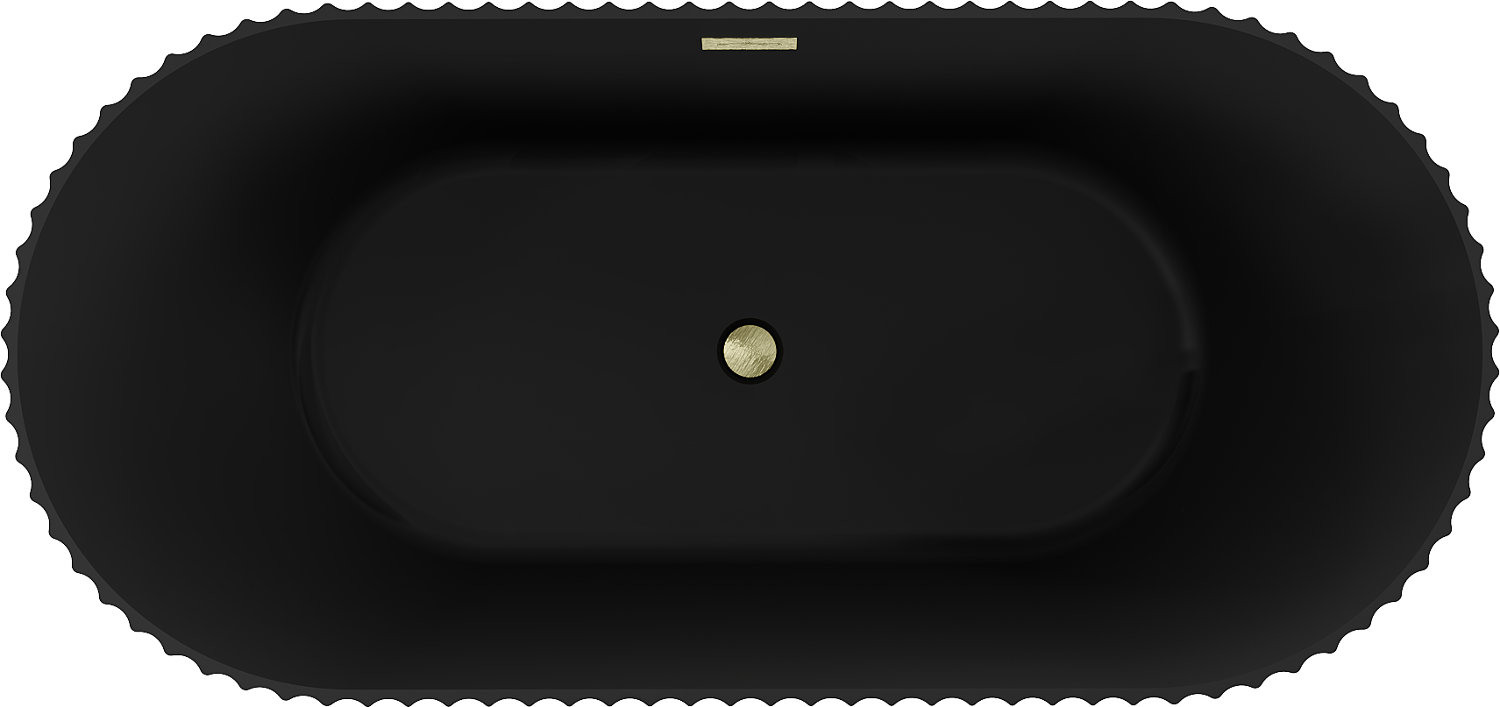 Mexen Paola freestanding fluted bath 150 x 75 cm, black matte, brushed gold overflow - 52721507571-55