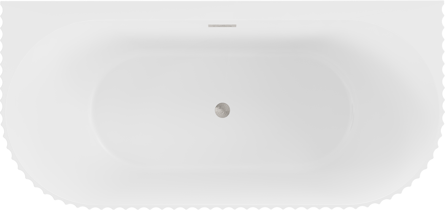 Mexen Sella freestanding ribbed wall bathtub 150 x 75 cm, white matte, brushed nickel overflow - 52711507501-97