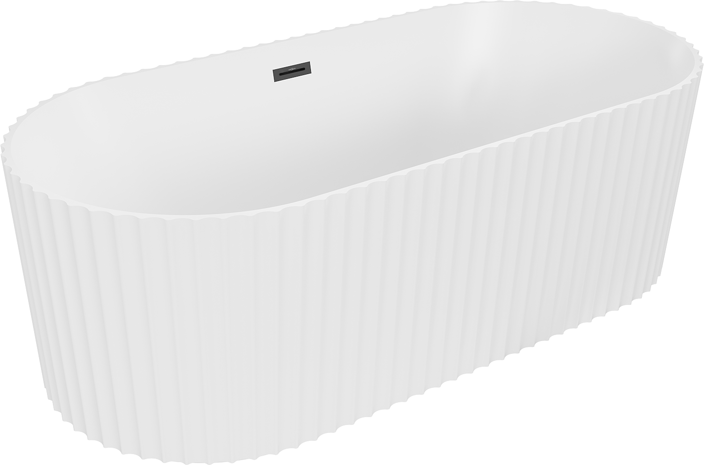 Mexen Paola freestanding fluted bath 170 x 80 cm, white matte, black overflow - 52721708001-70