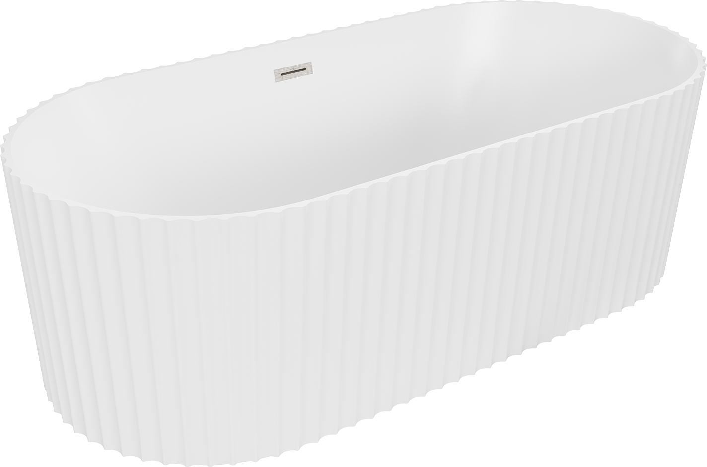 Mexen Paola freestanding fluted bathtub 170 x 80 cm, white matt, brushed nickel overflow - 52721708001-97