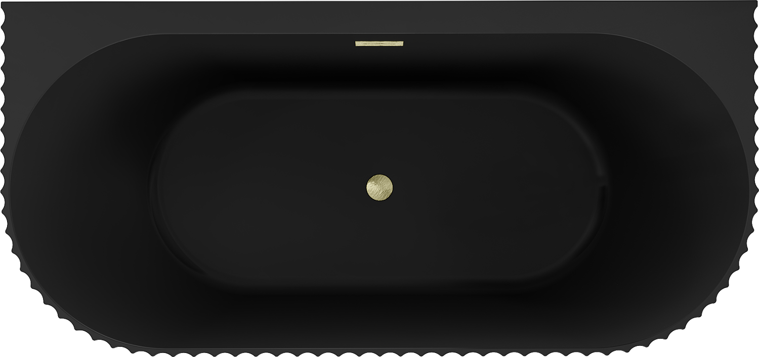 Mexen Sella freestanding back-to-wall ribbed bathtub 170 x 80 cm, matte black, brushed gold overflow - 52711708071-55