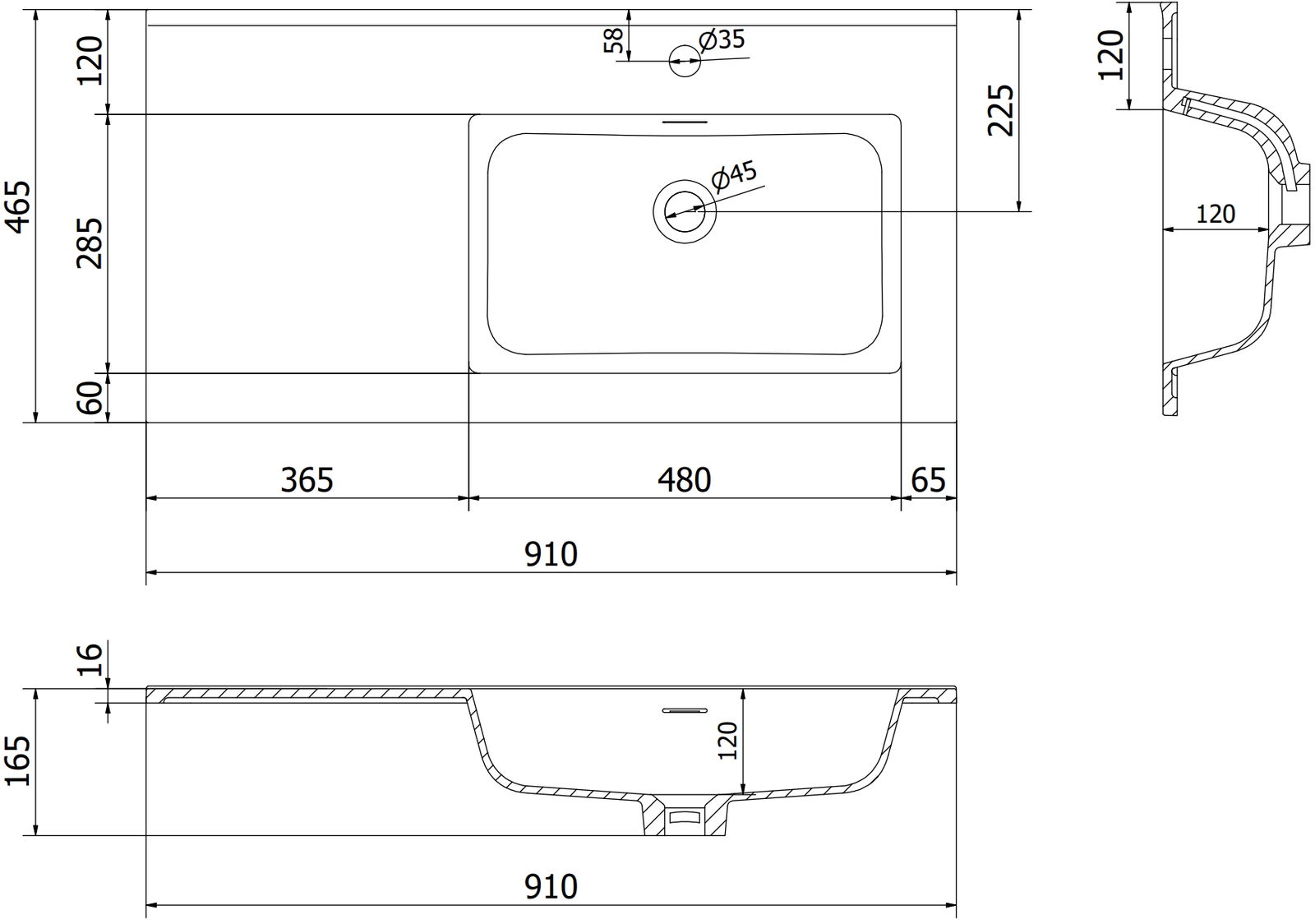 Mexen Otis right countertop basin 91 x 46.5 cm, glossy white - 25189000P