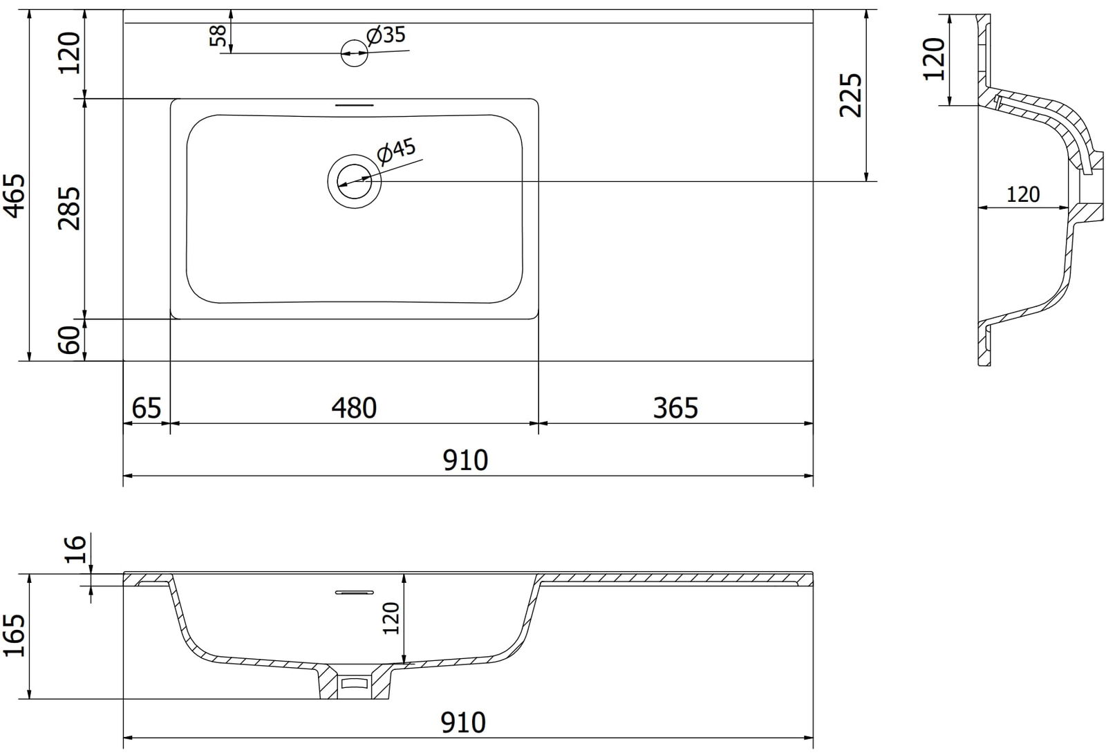 Mexen Otis left countertop sink 91 x 46.5 cm, matte white - 25189001L