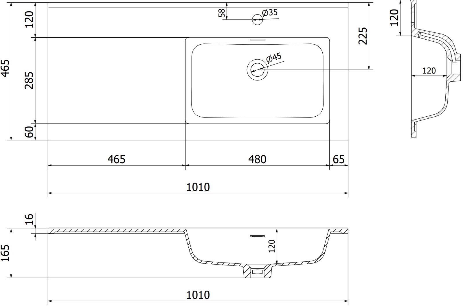 Mexen Otis countertop sink right 101 x 46.5 cm, white matte - 25181001P