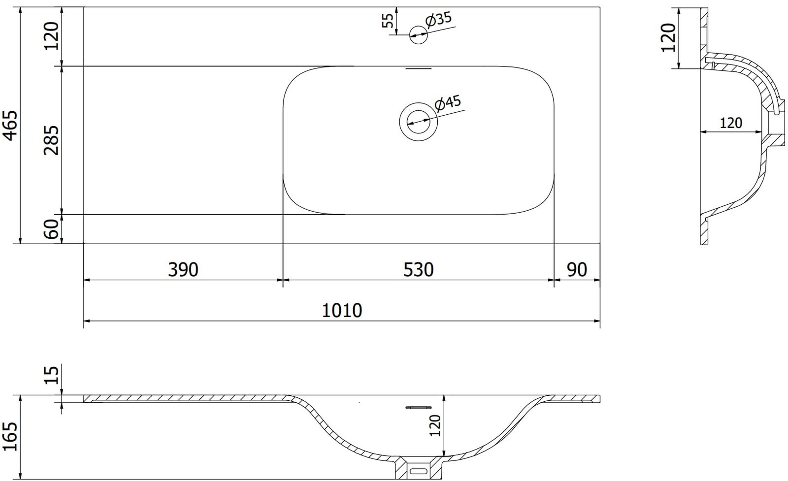 Mexen Vela recessed basin right 101 x 46.5 cm, matte black - 25231071P