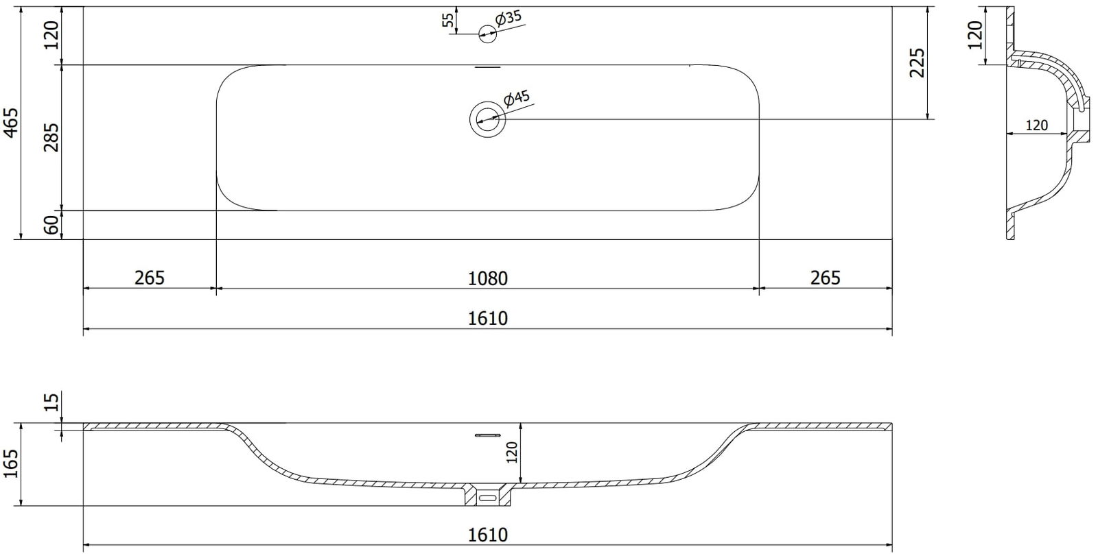 Mexen Vela countertop inset washbasin 161 x 46.5 cm, matte black - 25231671