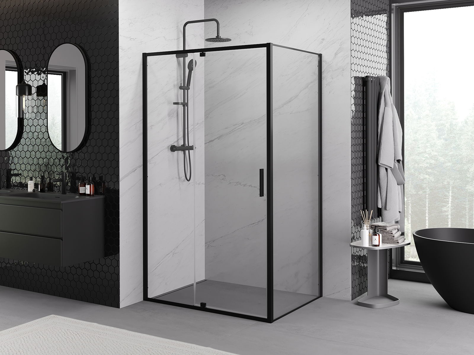 Thanks to the use of a universal mounting system, shower doors can be installed on the right or left side, depending on your needs. This allows you to easily design a shower tailored to the bathroom space.