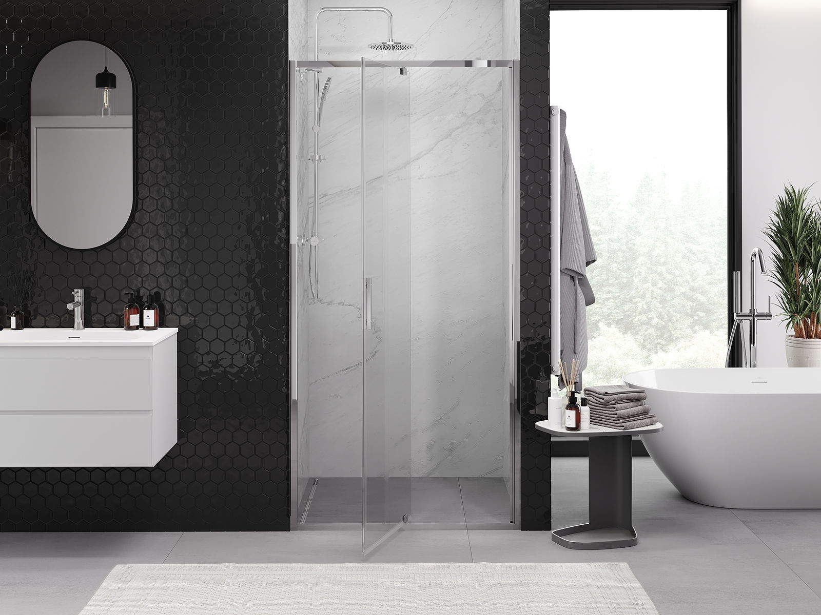 Thanks to the use of a universal mounting system, shower doors can be installed on the right or left side, depending on your needs. This allows you to easily design a shower tailored to the bathroom space.