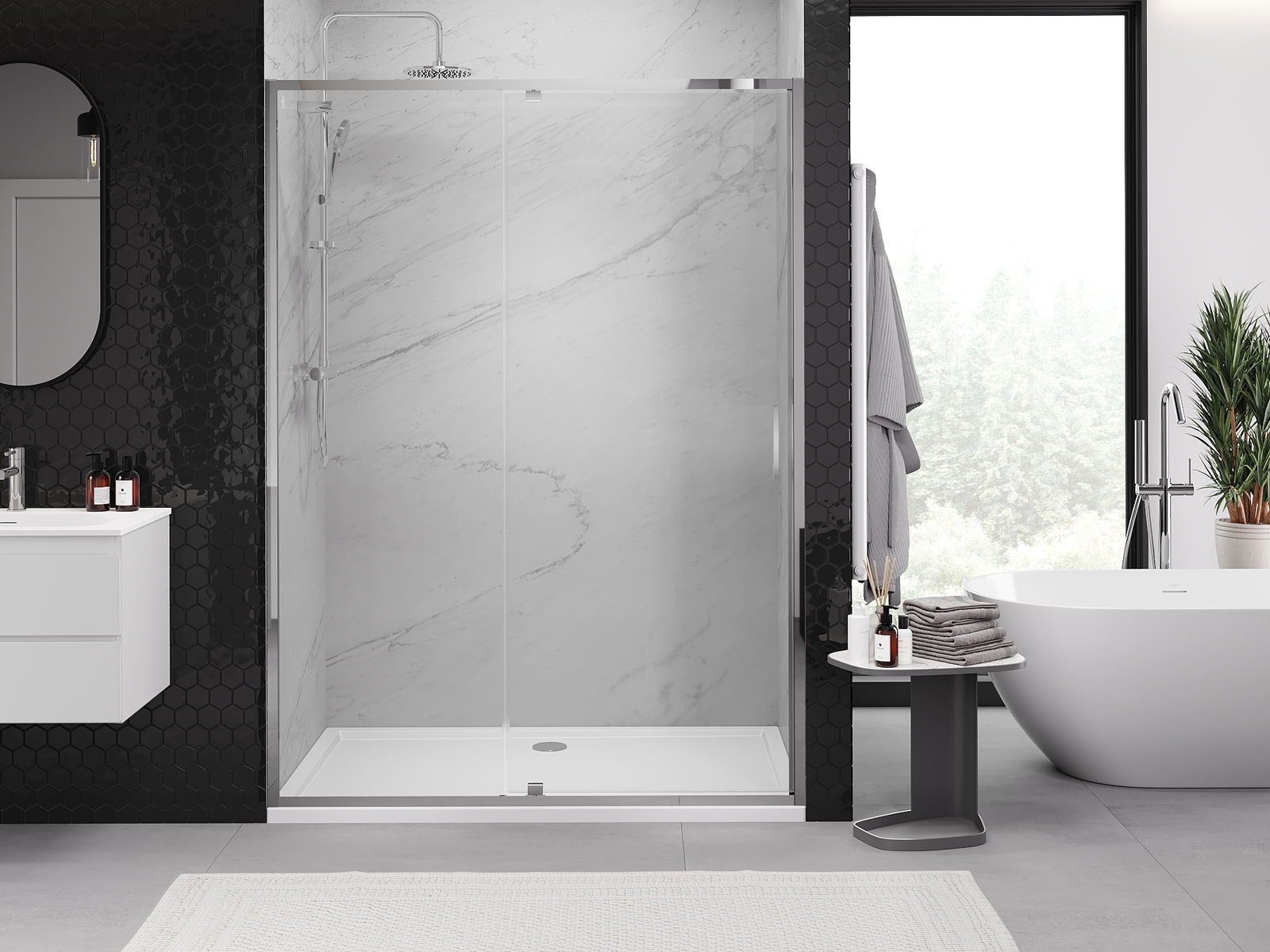 Thanks to the use of a universal mounting system, shower doors can be installed on the right or left side, depending on your needs. This allows you to easily design a shower tailored to the bathroom space.