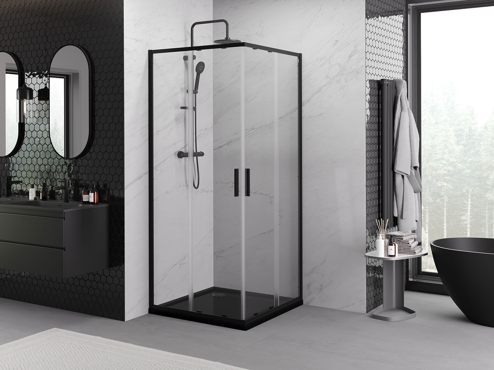 Sliding doors move along special guides and do not require additional space to open them, making them ideal for smaller bathrooms. Thanks to the double rollers with a metal body, their movement is smooth.