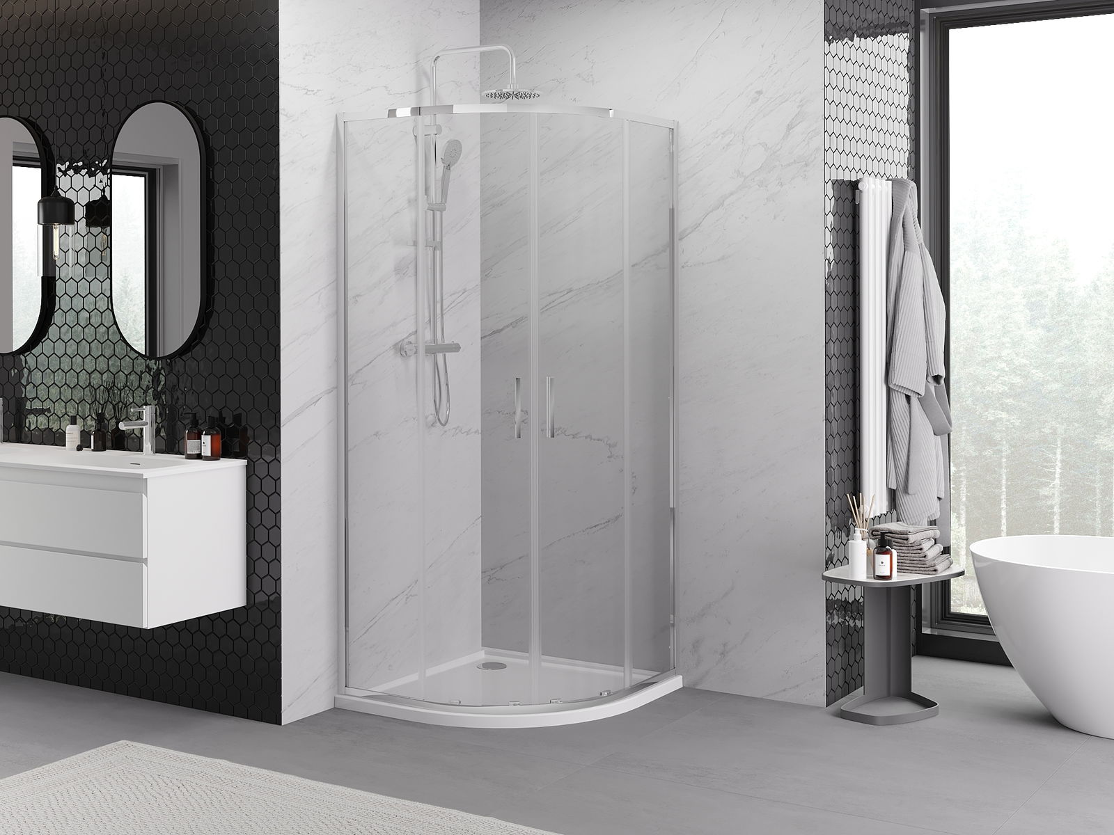 A handy and comfortable handle made from durable and resistant metal. Its trendy shape combined with a finish matched to the colour of the profiles gives the whole a modern and stylish look, highlighting the aesthetics of every bathroom.