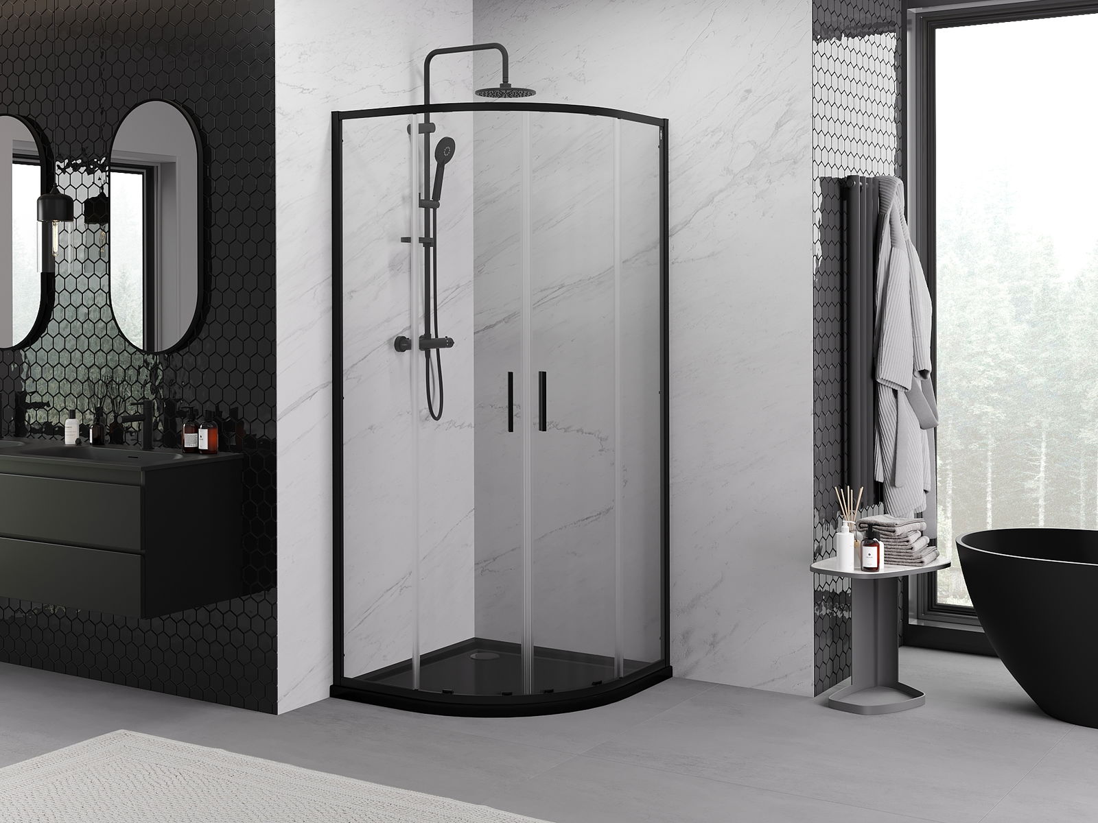 Mexen Exo semi-circular sliding shower cabin 80 x 80 cm, transparent, black - 8132-080-080-70-00
