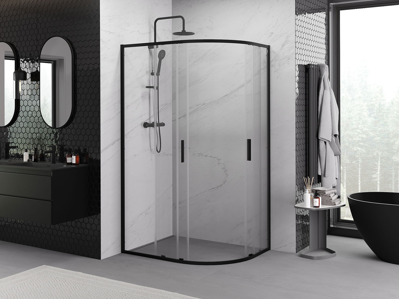 Mexen Exo semi-circular asymmetric sliding shower enclosure 120 x 90 cm, transparent, black - 8132-120-090-70-00