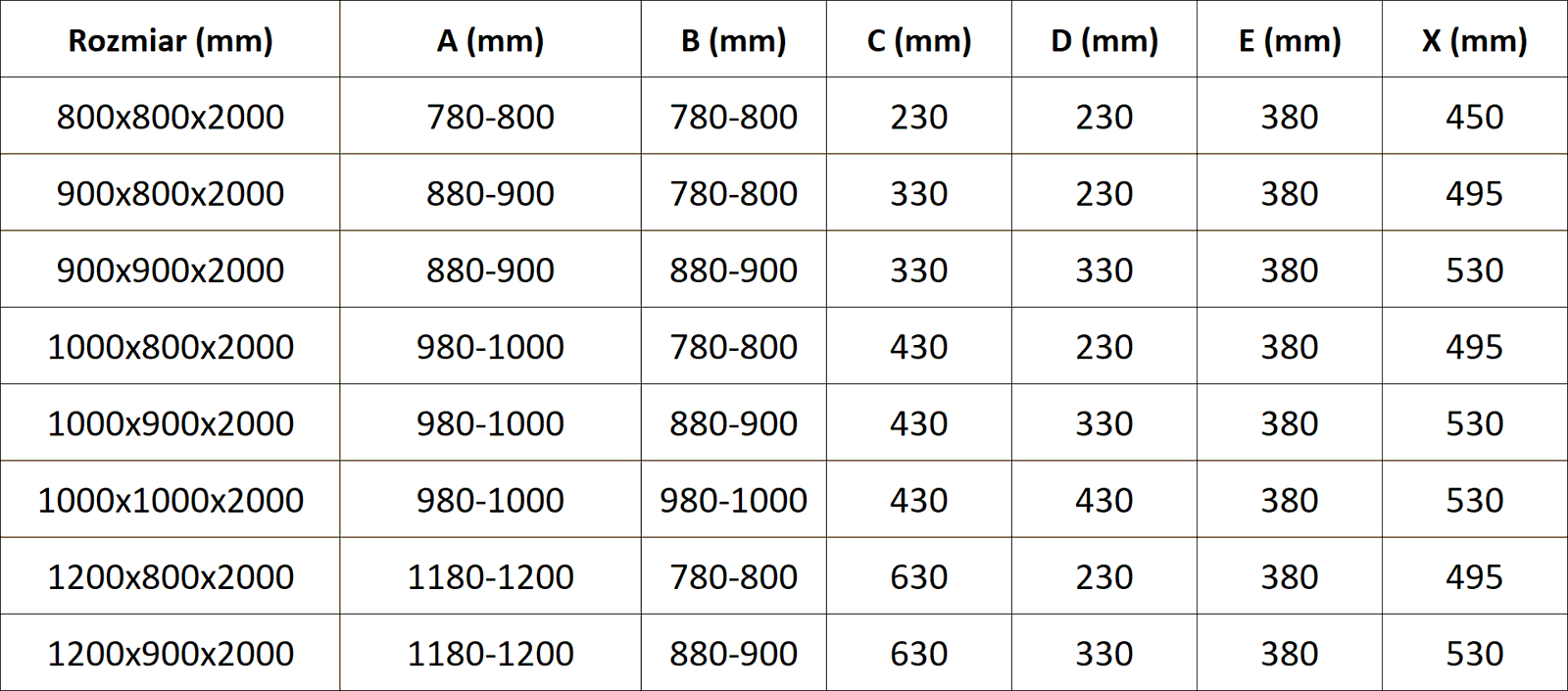Glass thickness: 6 mm