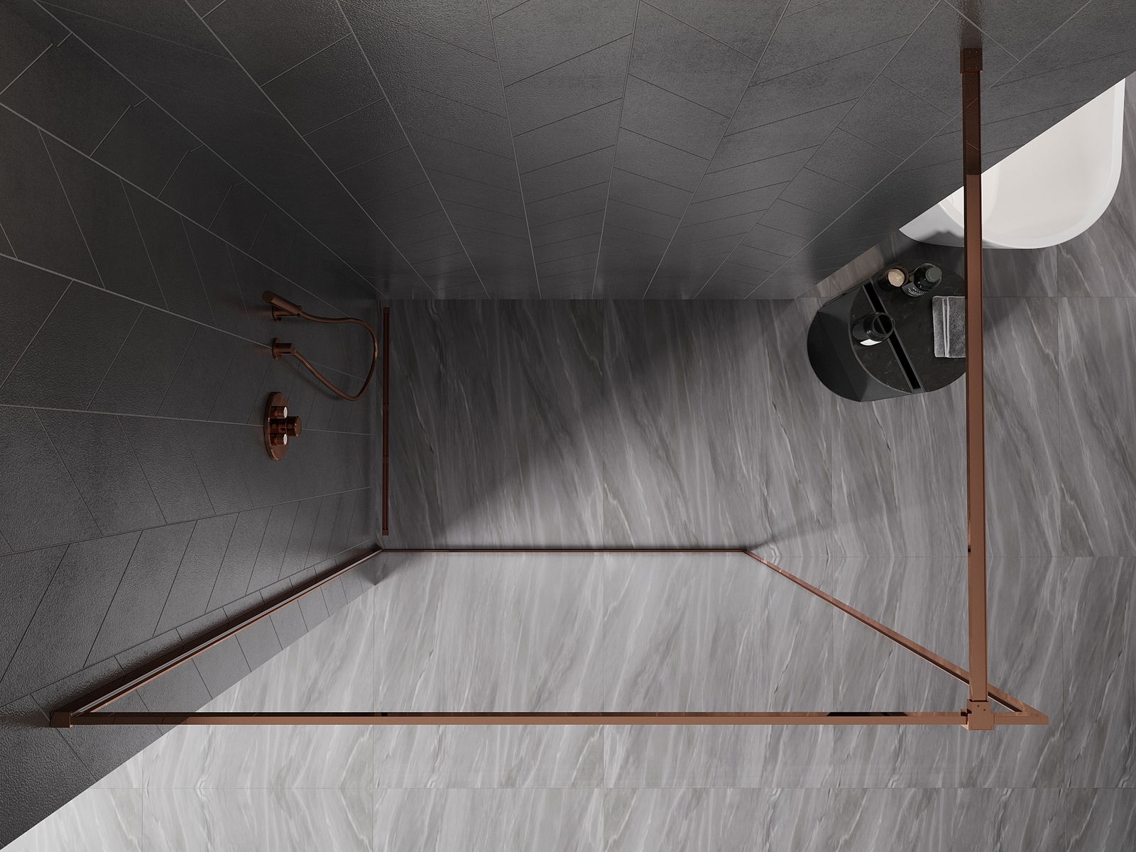 Mexen Kioto-F Shower Wall Walk-in with Frame 60 x 202 cm, Transparent 8 mm, Rose Gold - 800-060-104-60-00