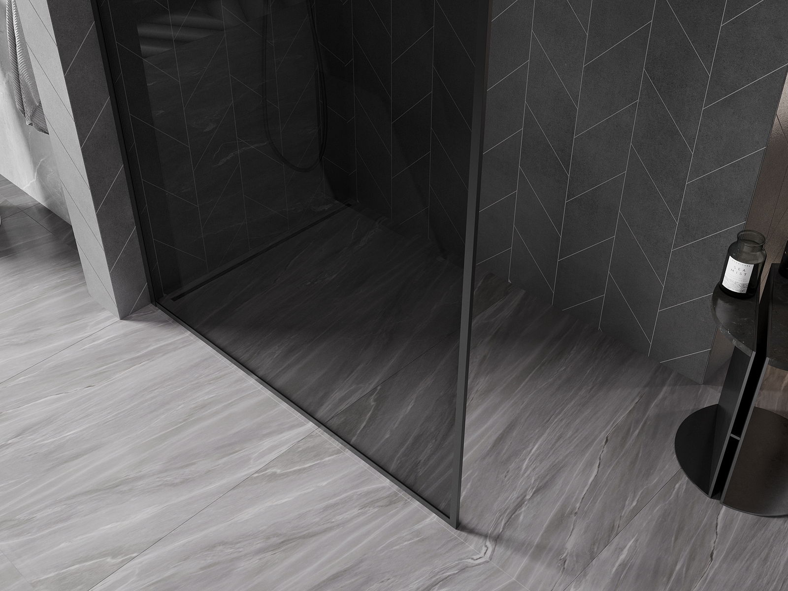 Mexen Kioto-F Walk-in Shower Panel with Frame 80 x 202 cm, Graphite 8 mm, Black - 800-080-104-70-40