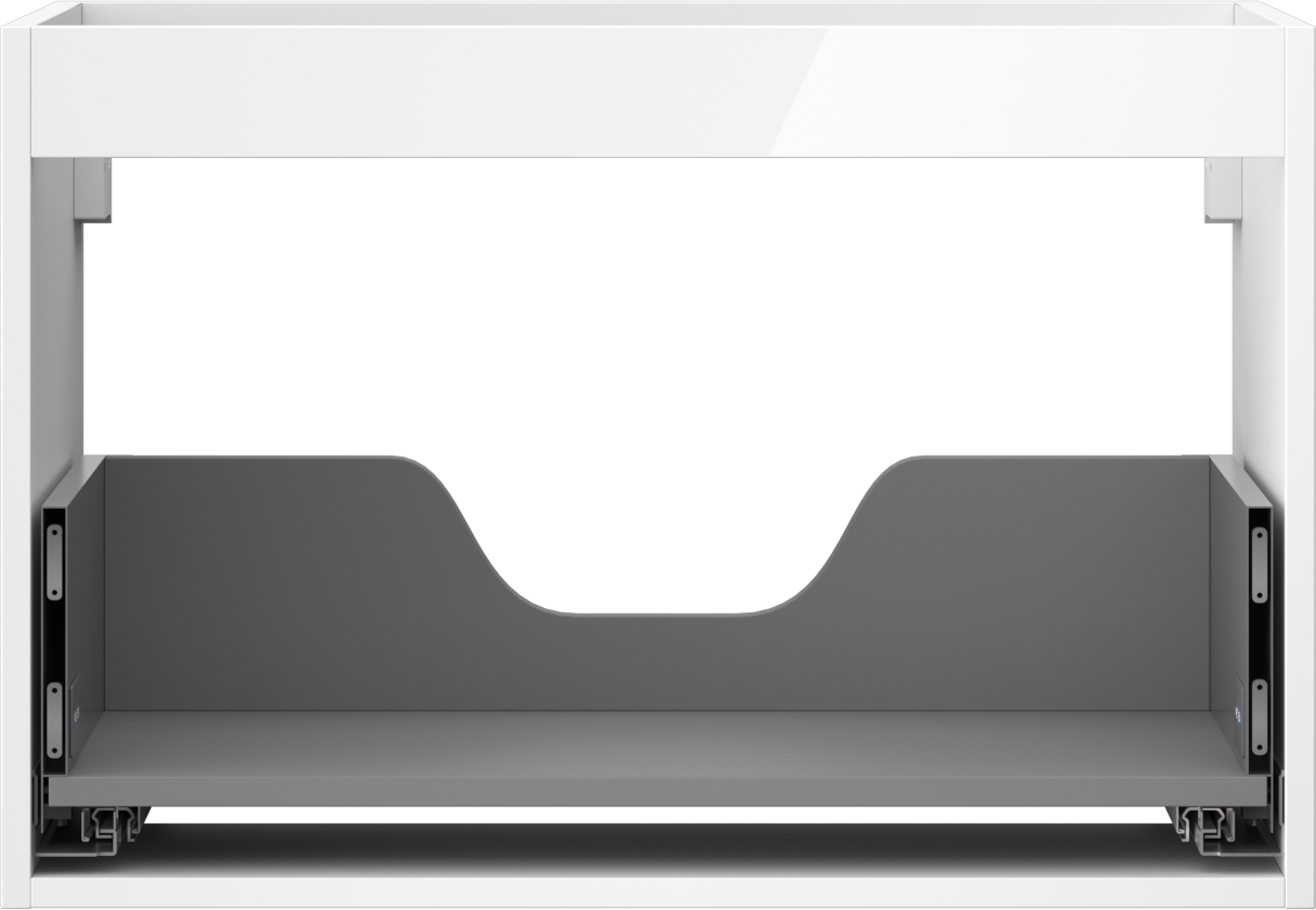 The cutout in the drawer is designed in such a way as to accommodate the siphon, which is essential in sink installations. This allows the furniture to be fully functional without having to give up drawer space for the installation.