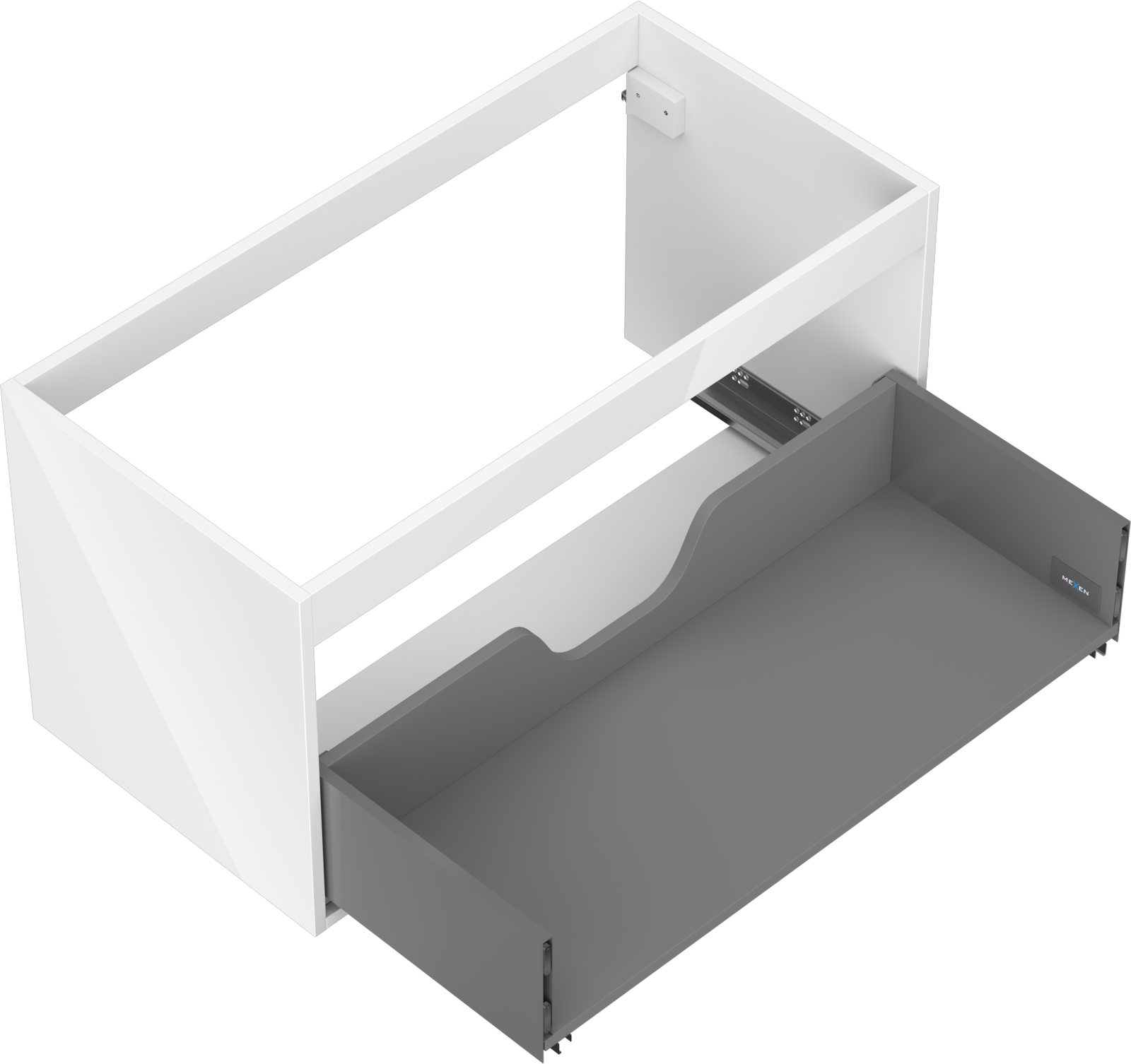 The cutout in the drawer is designed in such a way as to accommodate the siphon, which is essential in sink installations. This allows the furniture to be fully functional without having to give up drawer space for the installation.
