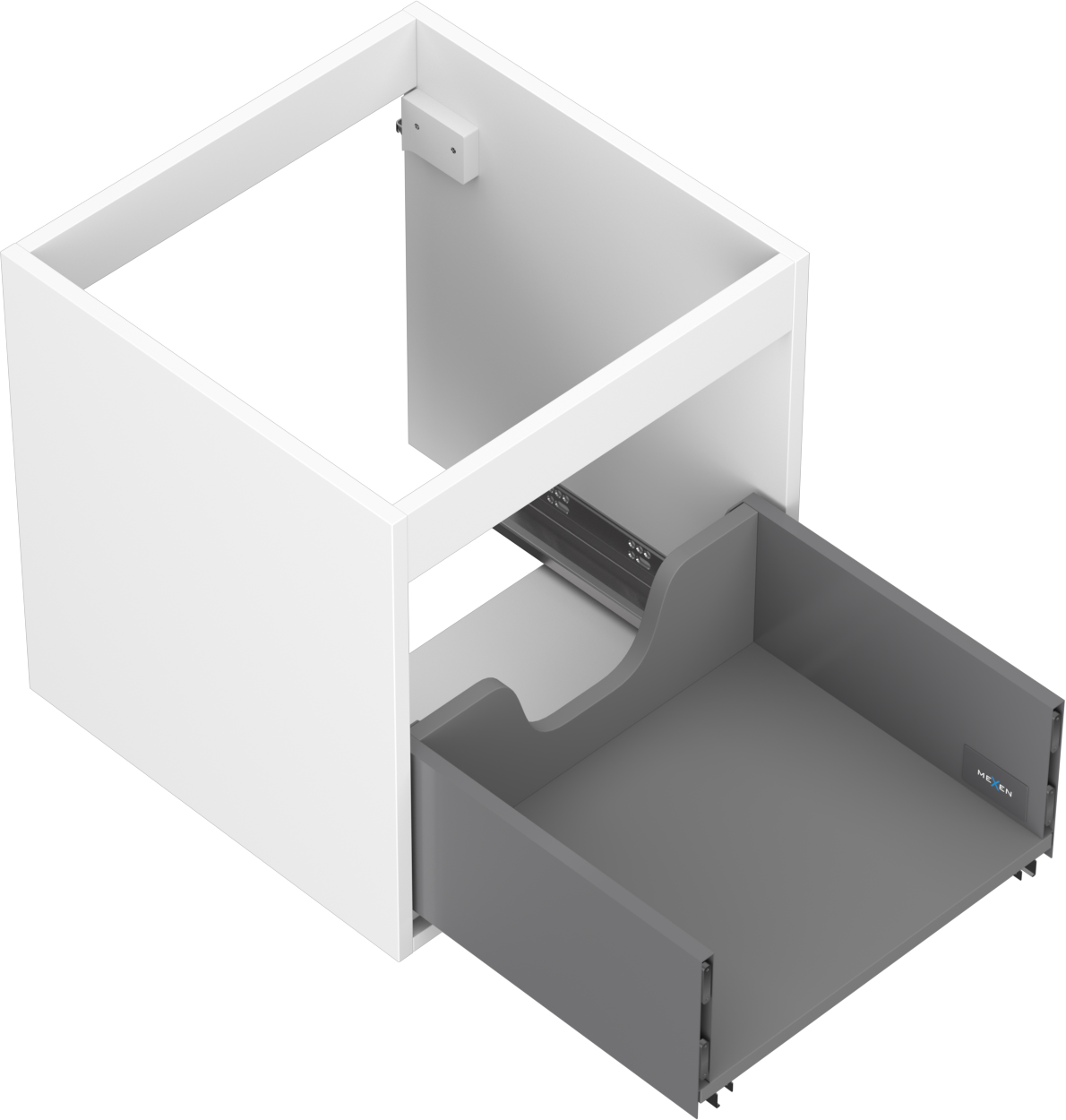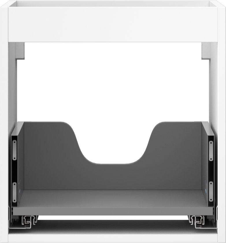 The cutout in the drawer is designed in such a way as to accommodate the siphon, which is essential in sink installations. This allows the furniture to be fully functional without having to give up drawer space for the installation.
