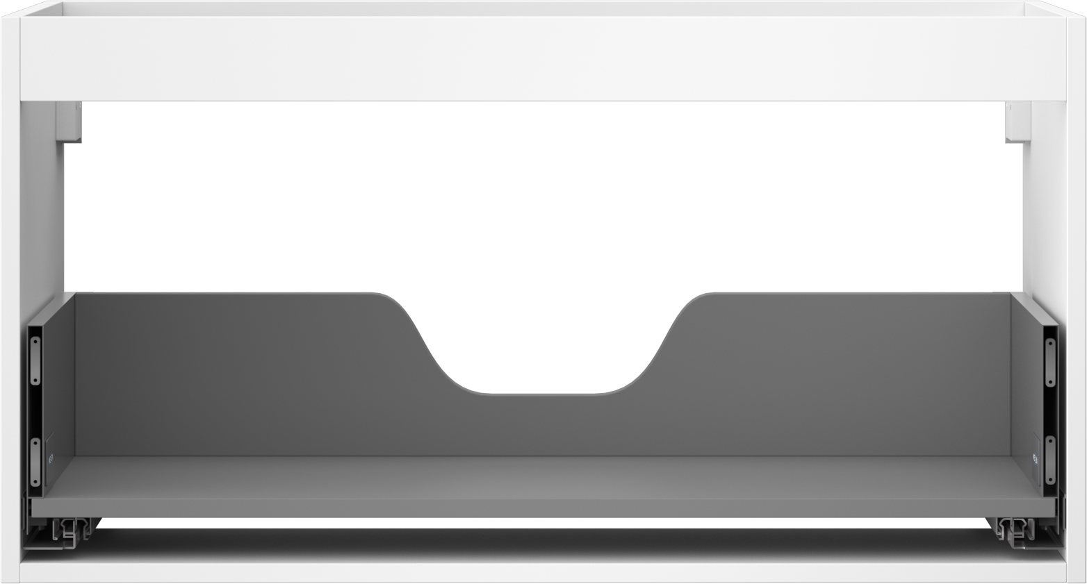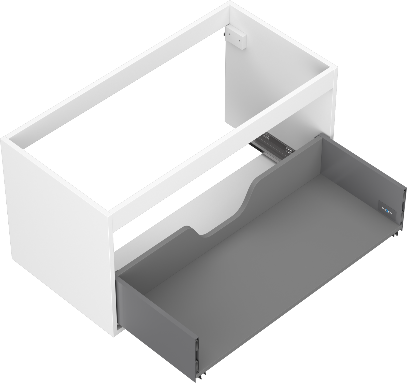The cutout in the drawer is designed in such a way as to accommodate the siphon, which is essential in sink installations. This allows the furniture to be fully functional without having to give up drawer space for the installation.
