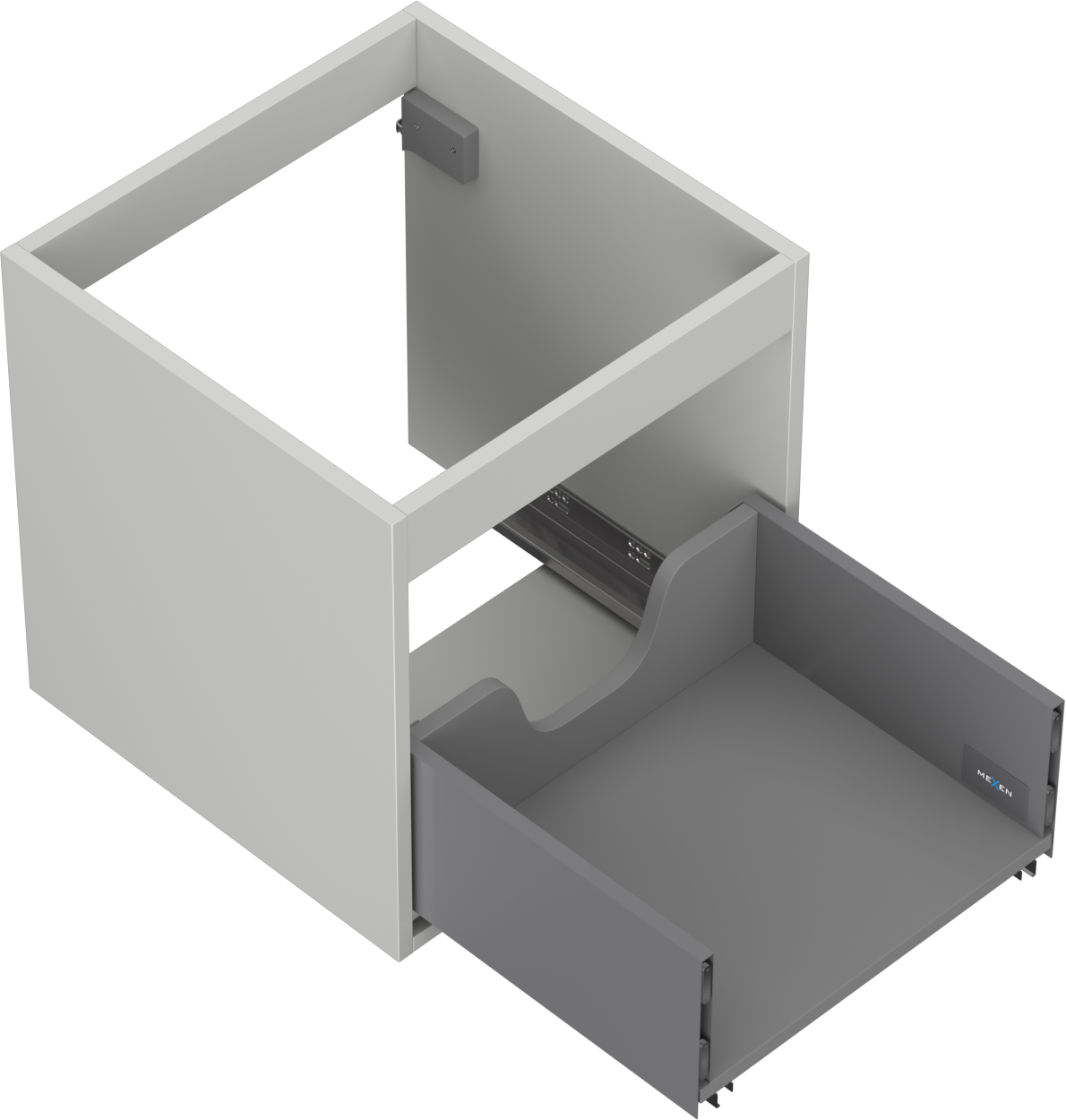 The cutout in the drawer is designed in such a way as to accommodate the siphon, which is essential in sink installations. This allows the furniture to be fully functional without having to give up drawer space for the installation.