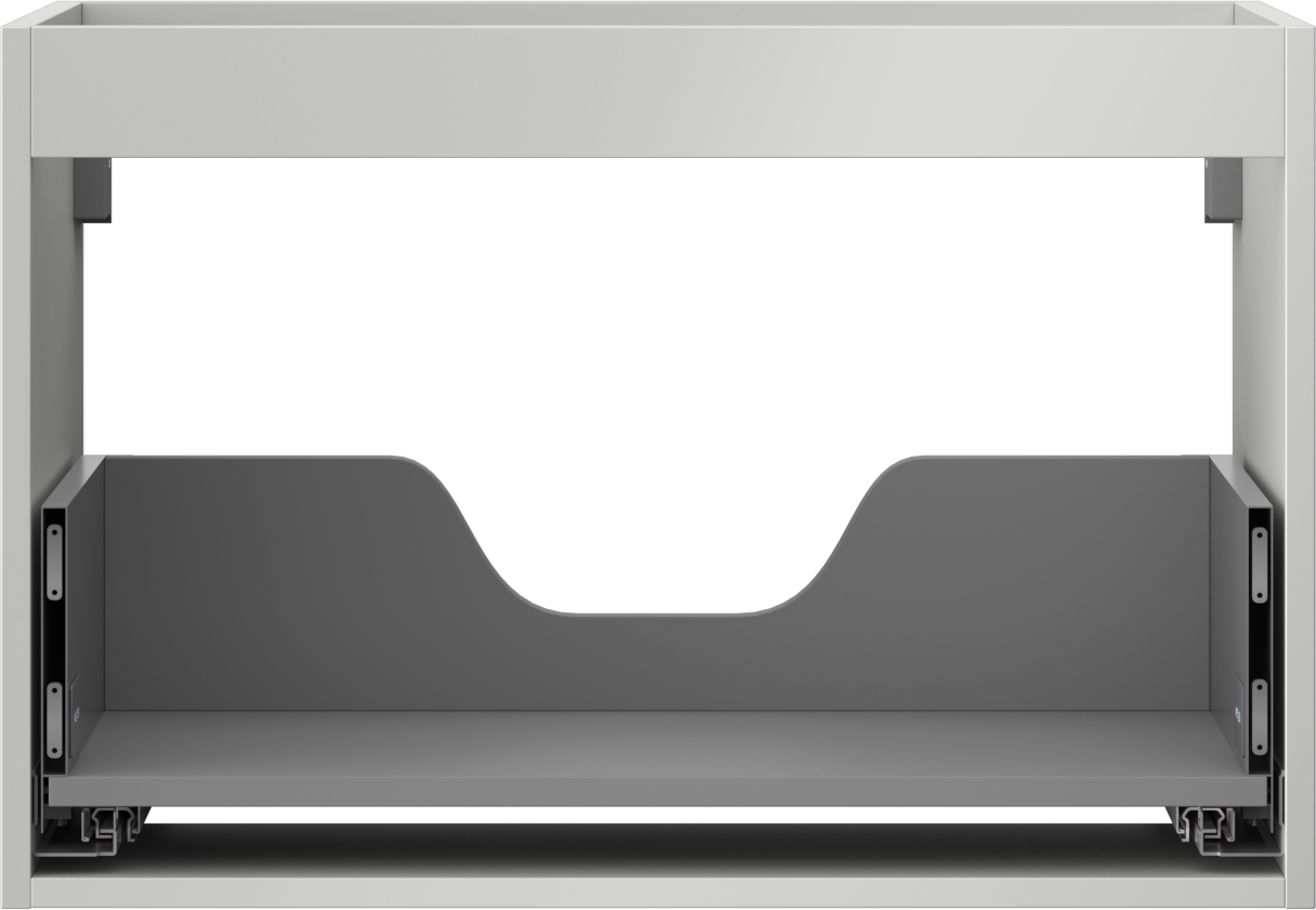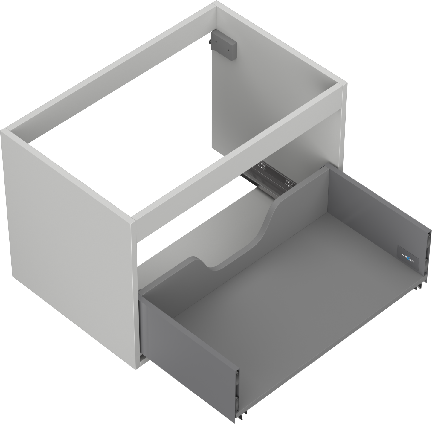The cutout in the drawer is designed in such a way as to accommodate the siphon, which is essential in sink installations. This allows the furniture to be fully functional without having to give up drawer space for the installation.