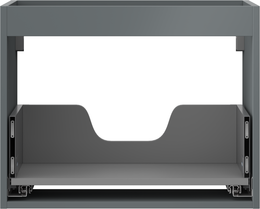 The cutout in the drawer is designed in such a way as to accommodate the siphon, which is essential in sink installations. This allows the furniture to be fully functional without having to give up drawer space for the installation.