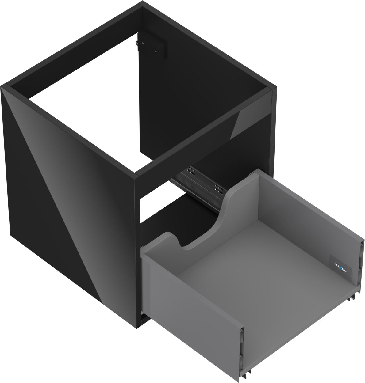 The cutout in the drawer is designed in such a way as to accommodate the siphon, which is essential in sink installations. This allows the furniture to be fully functional without having to give up drawer space for the installation.
