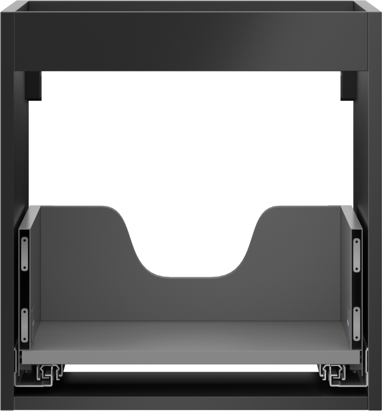 The cutout in the drawer is designed in such a way as to accommodate the siphon, which is essential in sink installations. This allows the furniture to be fully functional without having to give up drawer space for the installation.