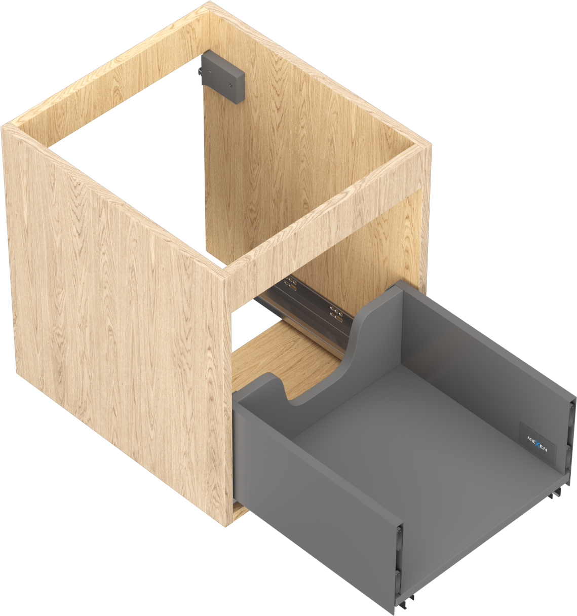 The cutout in the drawer is designed in such a way as to accommodate the siphon, which is essential in sink installations. This allows the furniture to be fully functional without having to give up drawer space for the installation.