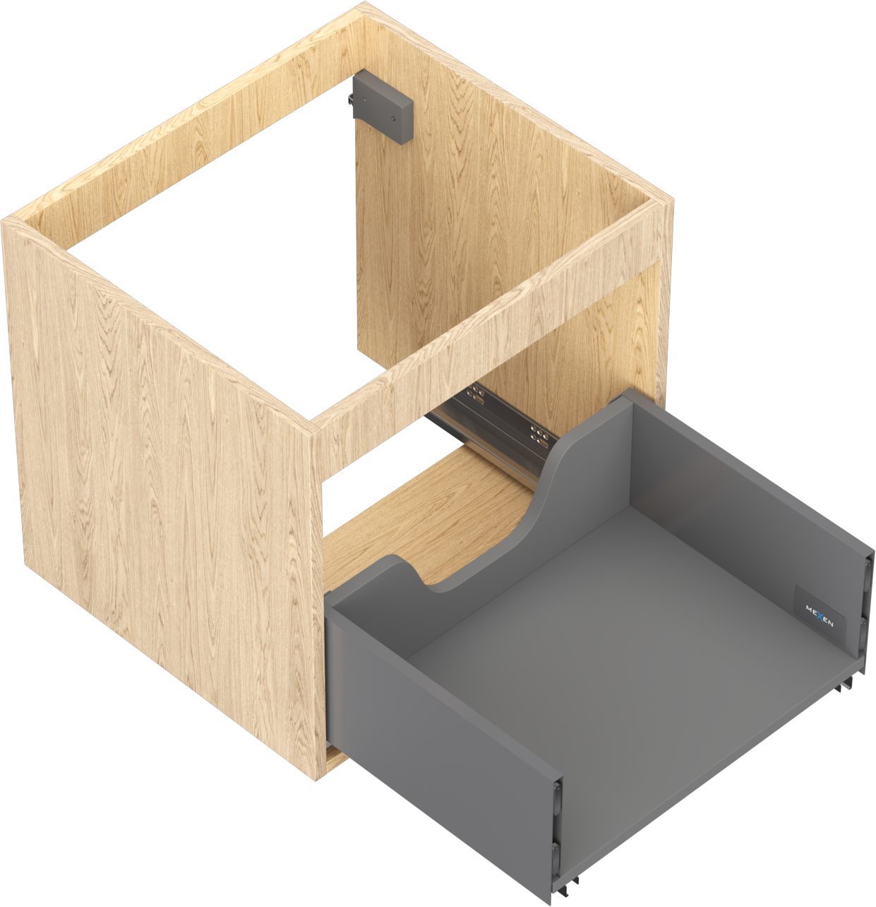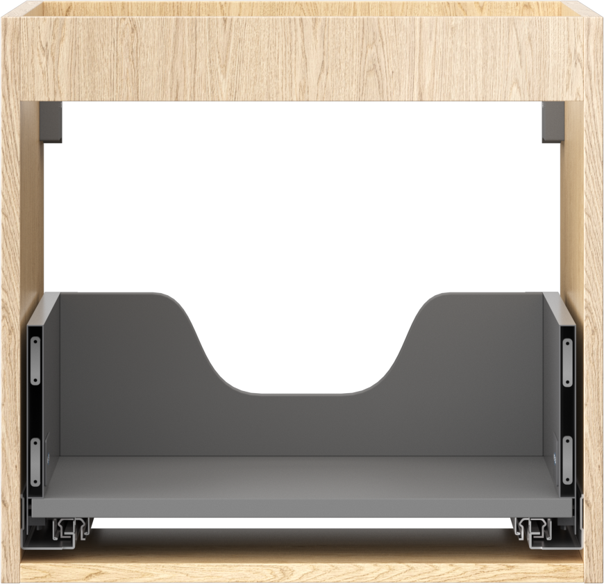The cutout in the drawer is designed in such a way as to accommodate the siphon, which is essential in sink installations. This allows the furniture to be fully functional without having to give up drawer space for the installation.