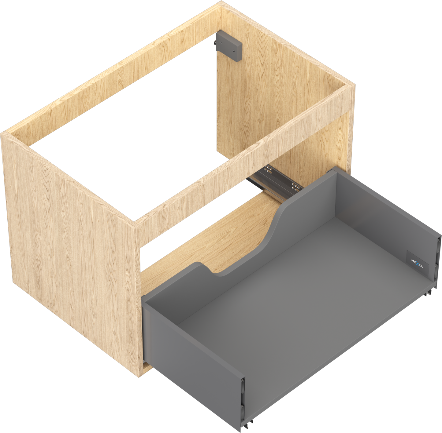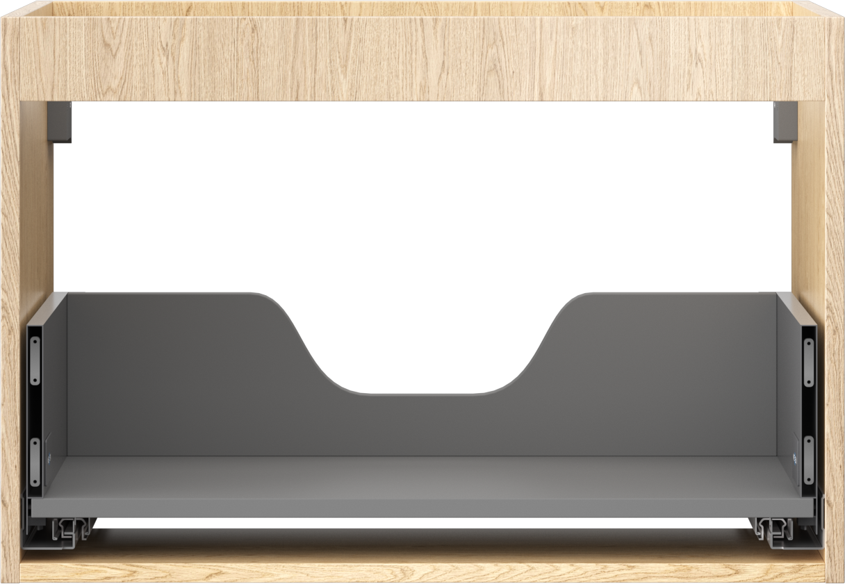 The cutout in the drawer is designed in such a way as to accommodate the siphon, which is essential in sink installations. This allows the furniture to be fully functional without having to give up drawer space for the installation.