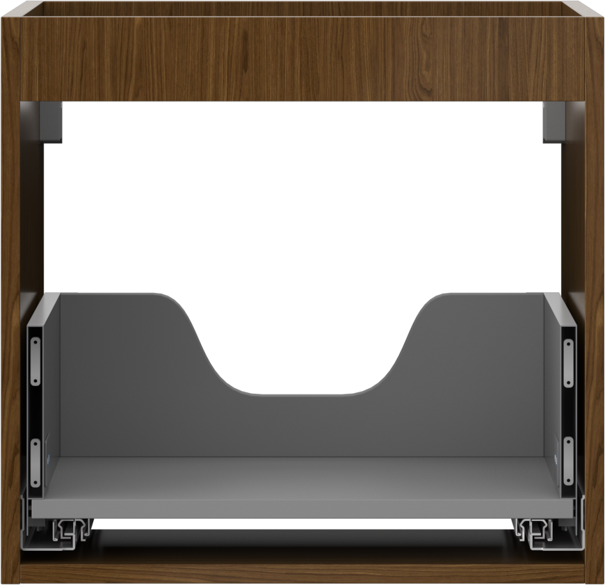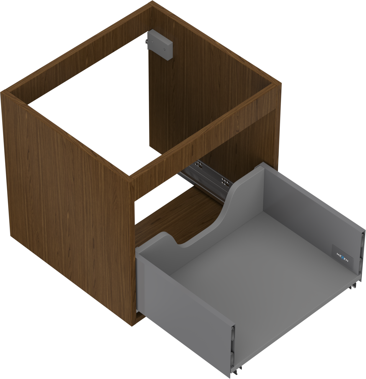 The cutout in the drawer is designed in such a way as to accommodate the siphon, which is essential in sink installations. This allows the furniture to be fully functional without having to give up drawer space for the installation.