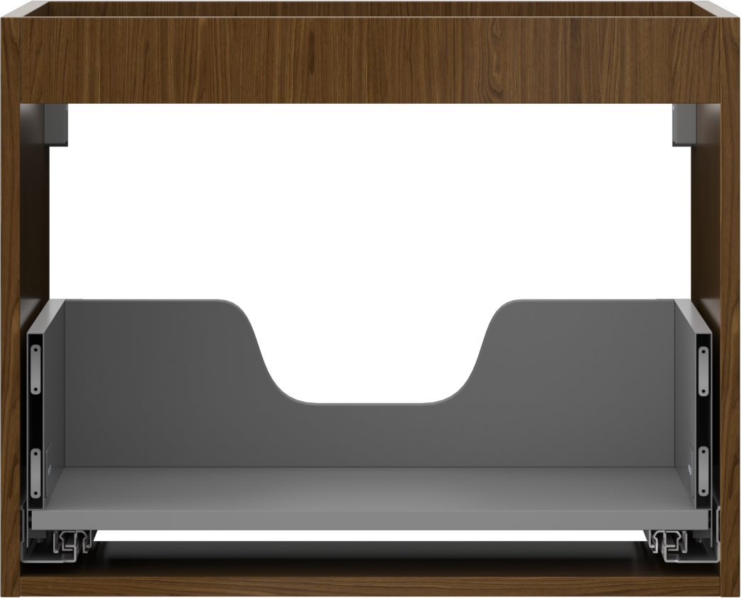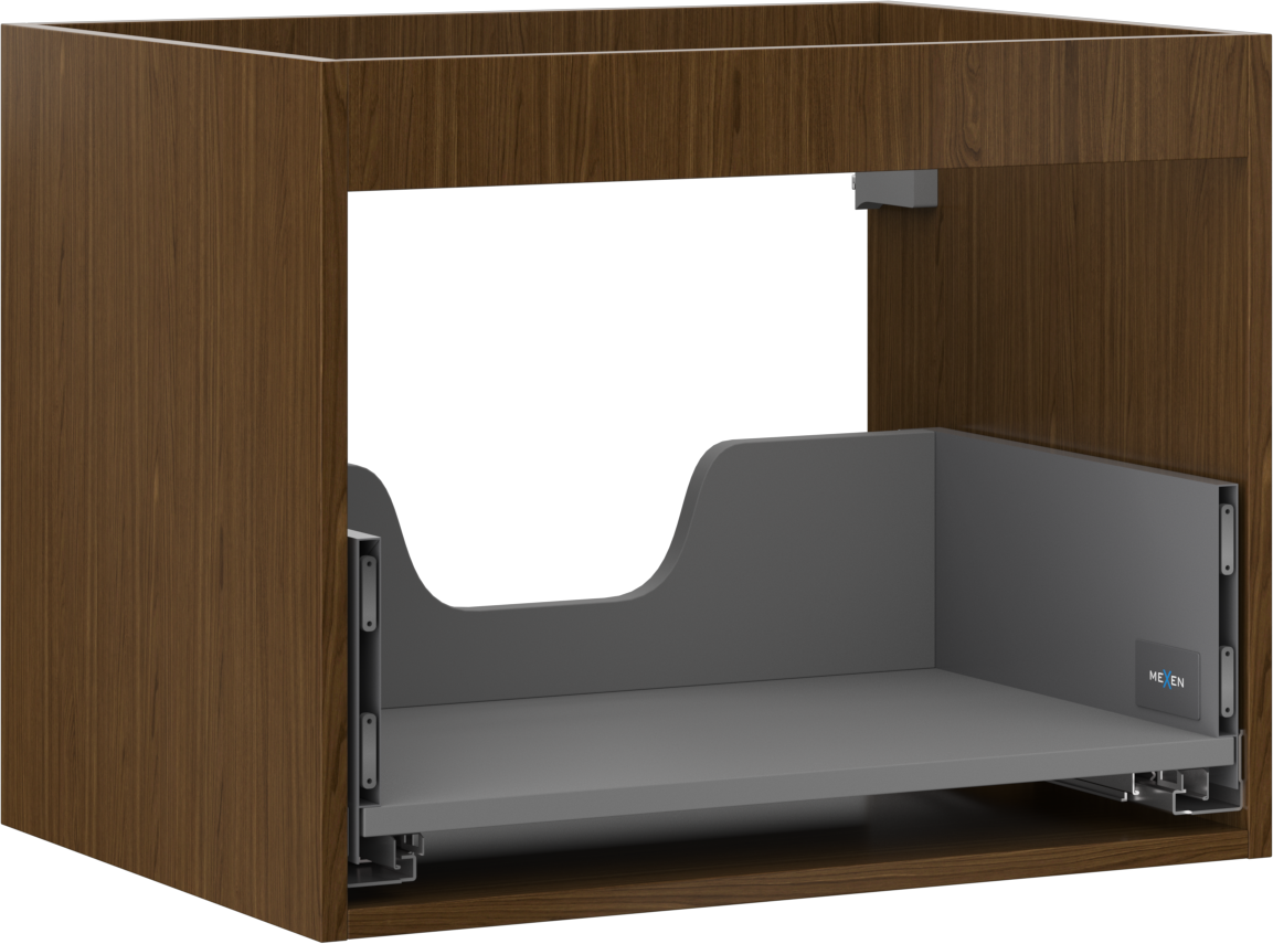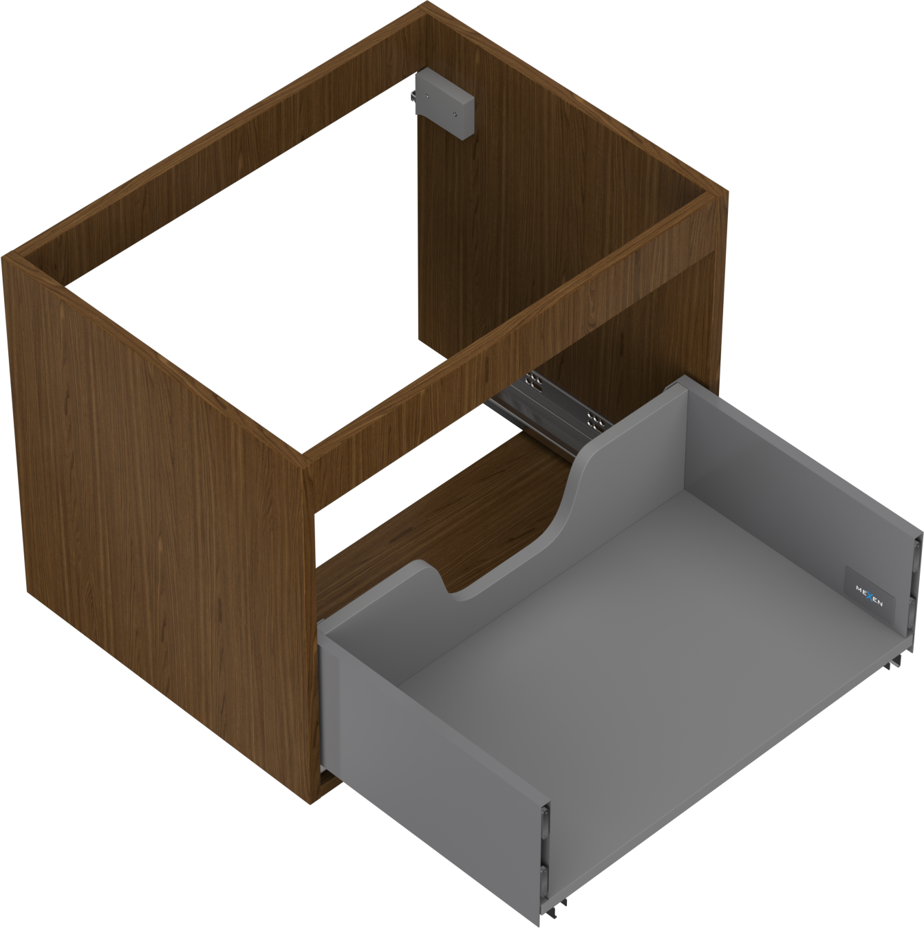 The cutout in the drawer is designed in such a way as to accommodate the siphon, which is essential in sink installations. This allows the furniture to be fully functional without having to give up drawer space for the installation.