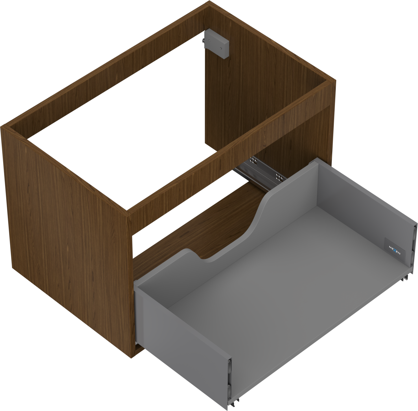 The cutout in the drawer is designed in such a way as to accommodate the siphon, which is essential in sink installations. This allows the furniture to be fully functional without having to give up drawer space for the installation.