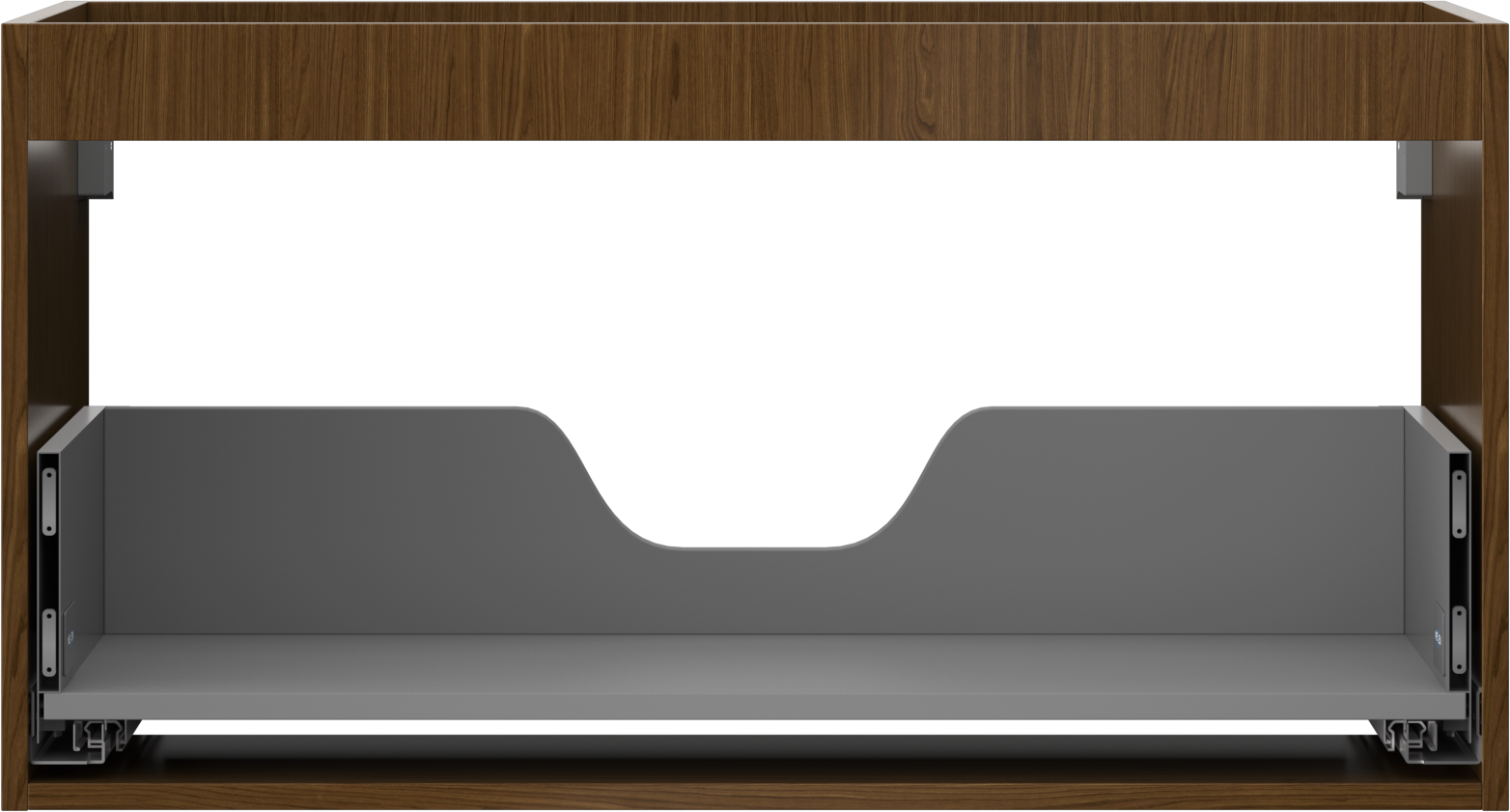 The cutout in the drawer is designed in such a way as to accommodate the siphon, which is essential in sink installations. This allows the furniture to be fully functional without having to give up drawer space for the installation.