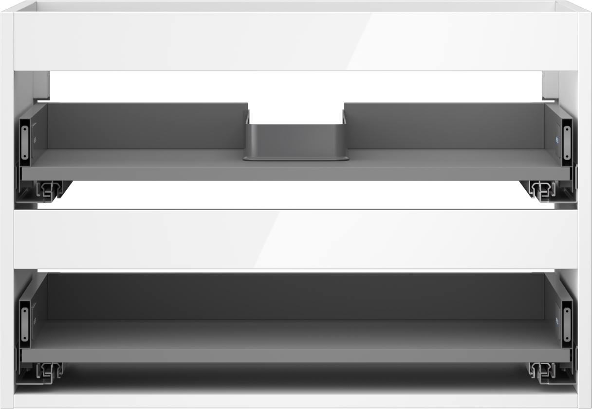 The cutout in the drawer is designed in such a way as to accommodate the siphon, which is essential in sink installations. This allows the furniture to be fully functional without having to give up drawer space for the installation.