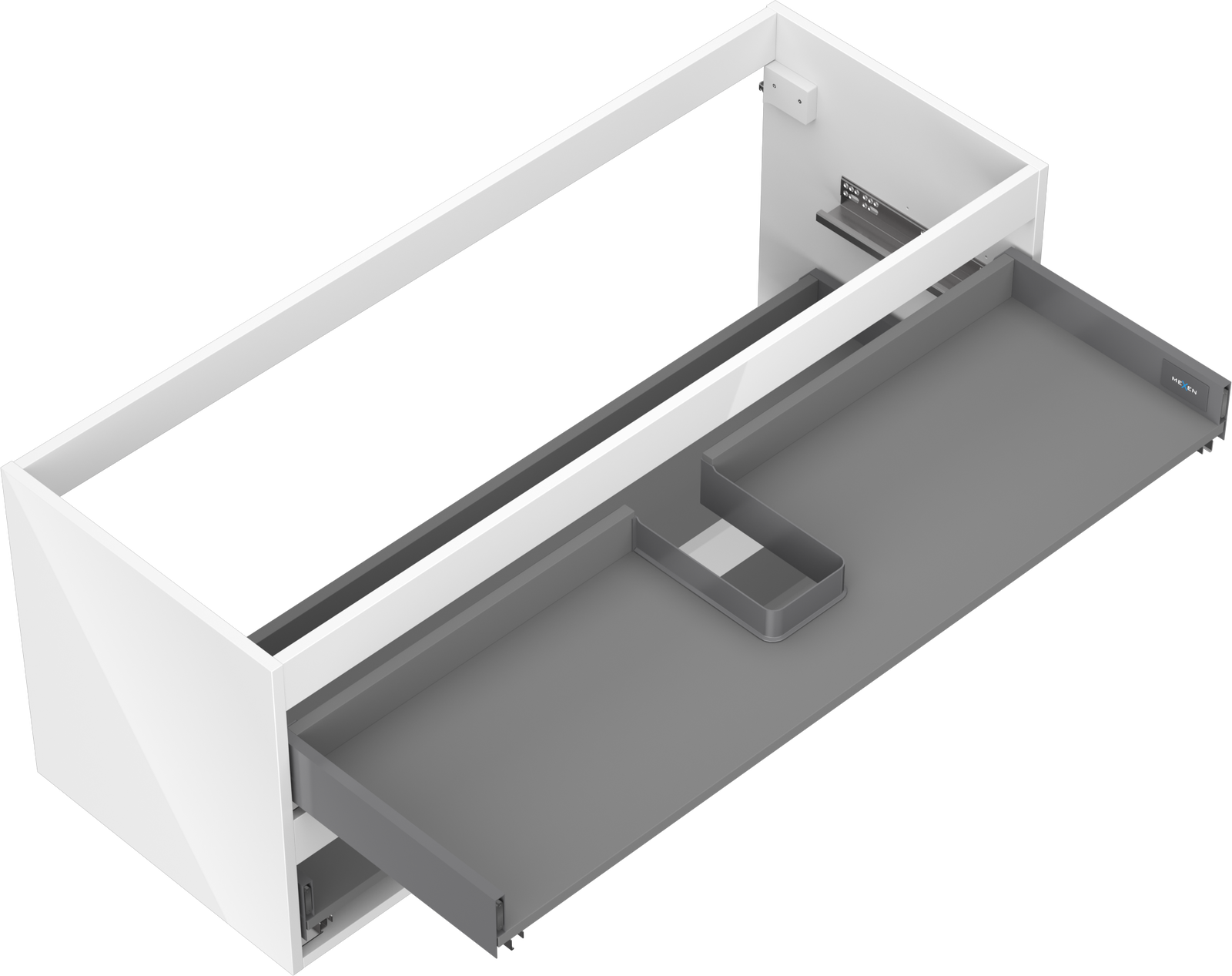The cutout in the drawer is designed in such a way as to accommodate the siphon, which is essential in sink installations. This allows the furniture to be fully functional without having to give up drawer space for the installation.